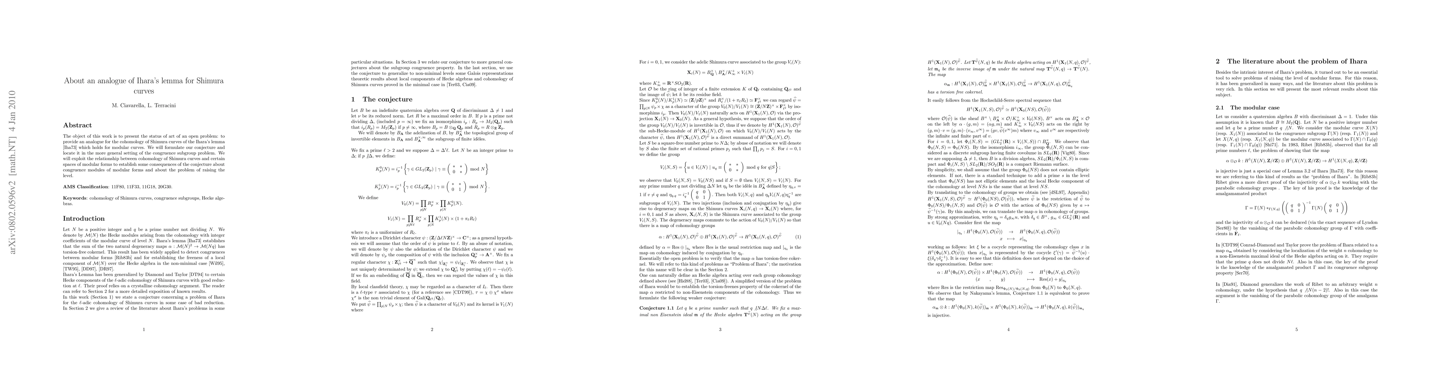 This paper aims to find an analogue of Ihara's lemma for Shimura curves, a mathematical concept that helps study modular forms, with the goal of solving the