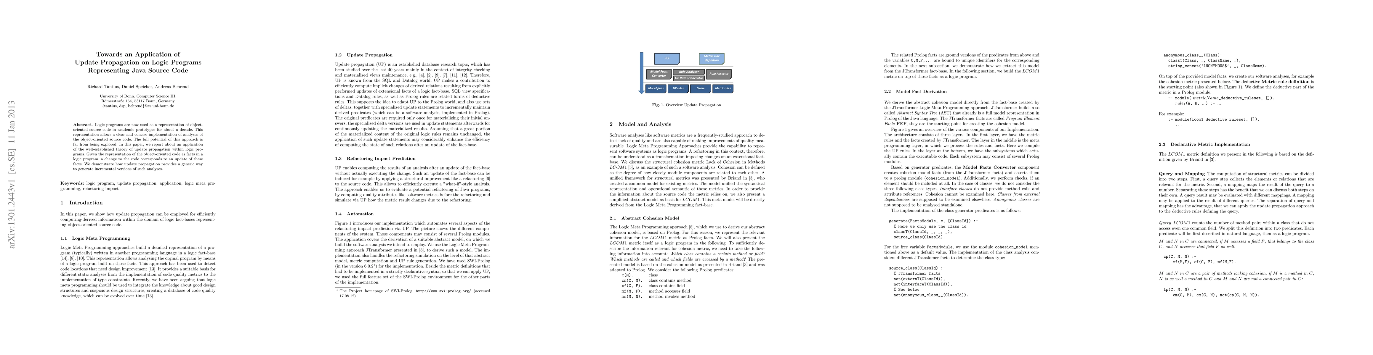 Logic programs are now used as a representation of object-oriented source code in academic prototypes for about a decade. This representation allows a clear and concise implementation of analyses of the object-oriented source code. The full potential of this approach is far from being explored. In this paper, we report about an application of the well-established theory of update propagation within logic programs. Given the representation of the object-oriented code as facts in a logic program, a change to the code corresponds to an update of these facts. We demonstrate how update propagation provides a generic way to generate incremental versions of such analyses.