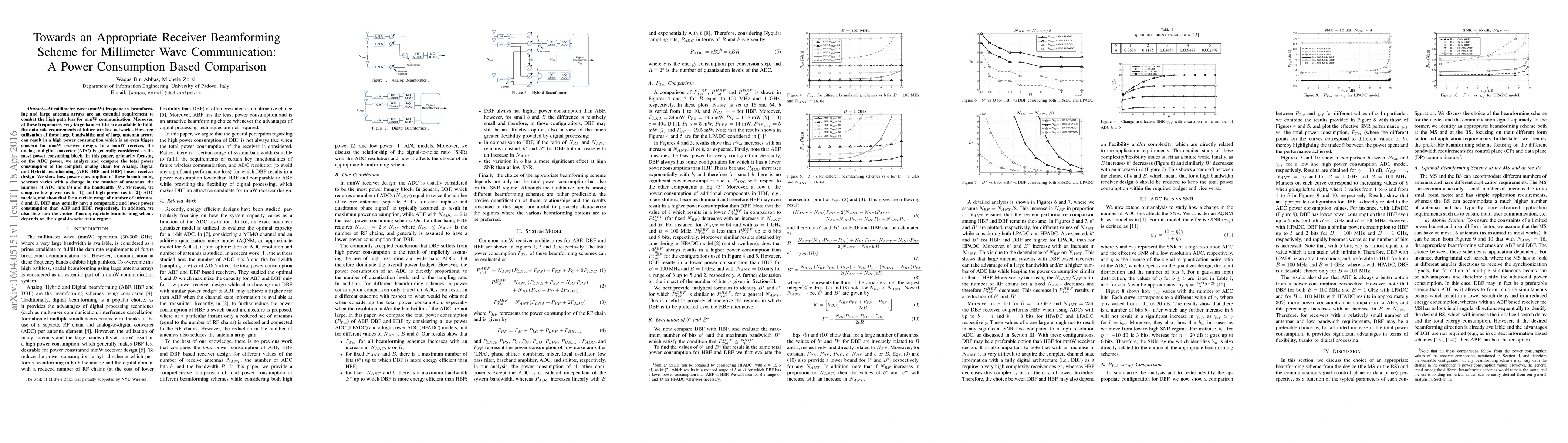 This paper compares the power consumption of Analog, Digital, and Hybrid beamforming schemes in millimeter wave communication receivers, focusing on the analog-to-digital converter (ADC) power. The study reveals that Digital Beamforming can sometimes be more power-efficient than Analog or Hybrid Beamforming, depending on the number of antennas, ADC bit resolution, and bandwidth, especially in certain signal-to-noise ratio regimes.
