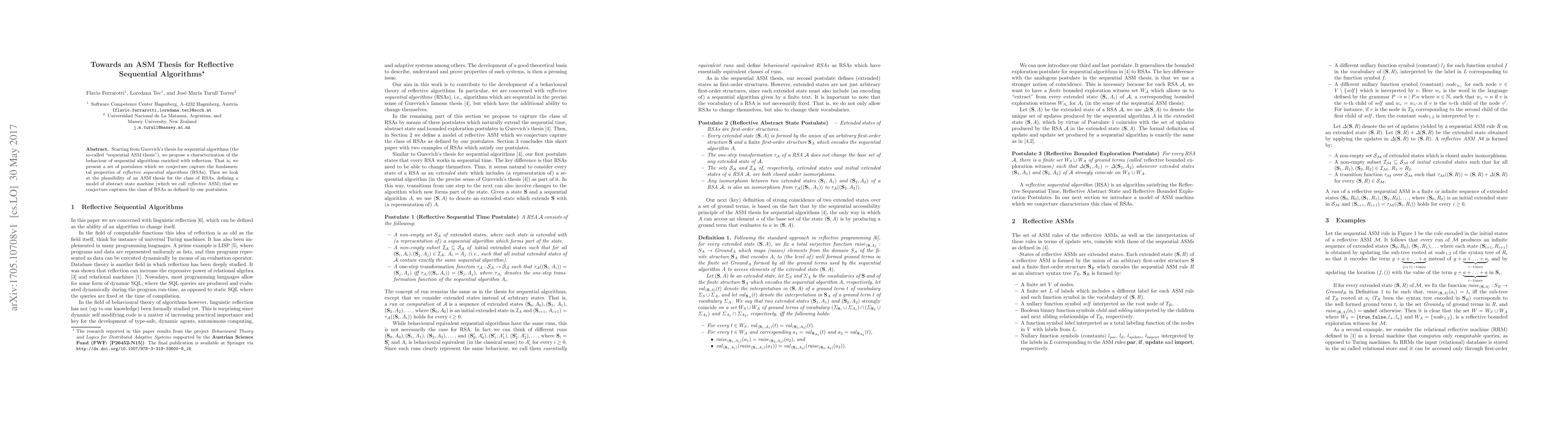 Starting from Gurevich's thesis for sequential algorithms (the so-called "sequential ASM thesis"), we propose a characterization of the behaviour of sequential algorithms enriched with reflection. That is, we present a set of postulates which we conjecture capture the fundamental properties of reflective sequential algorithms (RSAs). Then we look at the plausibility of an ASM thesis for the class of RSAs, defining a model of abstract state machine (which we call reflective ASM) that we conjecture captures the class of RSAs as defined by our postulates.