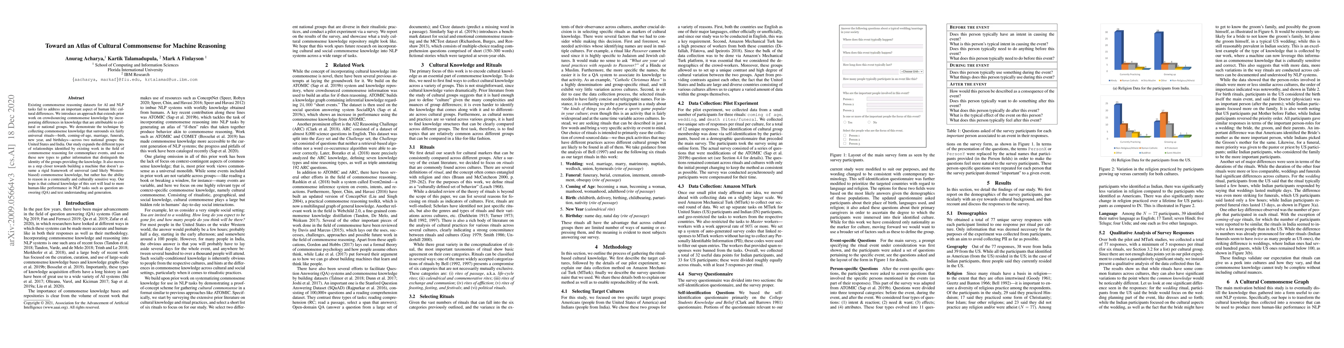 Existing commonsense reasoning datasets for AI and NLP tasks fail to address an important aspect of human life: cultural differences. We introduce an approach that extends prior work on crowdsourcing commonsense knowledge by incorporating differences in knowledge that are attributable to cultural or national groups. We demonstrate the technique by collecting commonsense knowledge that surrounds six fairly universal rituals -- birth, coming-of-age, marriage, funerals, new year, and birthdays -- across two national groups: the United States and India. Our study expands the different types of relationships identified by existing work in the field of commonsense reasoning for commonplace events, and uses these new types to gather information that distinguish the identity of the groups providing the knowledge. It also moves us a step closer towards building a machine that doesn't assume a rigid framework of universal (and likely Western-biased) commonsense knowledge, but rather has the ability to reason in a contextually and culturally sensitive way. Our hope is that cultural knowledge of this sort will lead to more human-like performance in NLP tasks such as question answering (QA) and text understanding and generation.