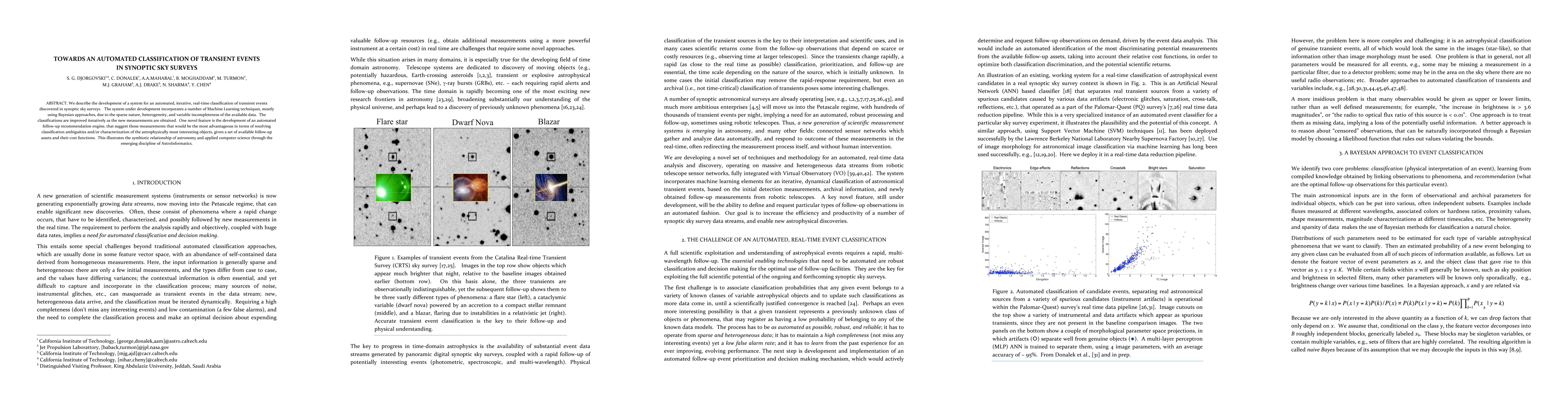 Researchers developed an automated system to classify transient events in synoptic sky surveys using machine learning techniques, improving classifications with each new measurement. The system also suggests follow-up measurements for resolving ambiguities or characterizing interesting objects.