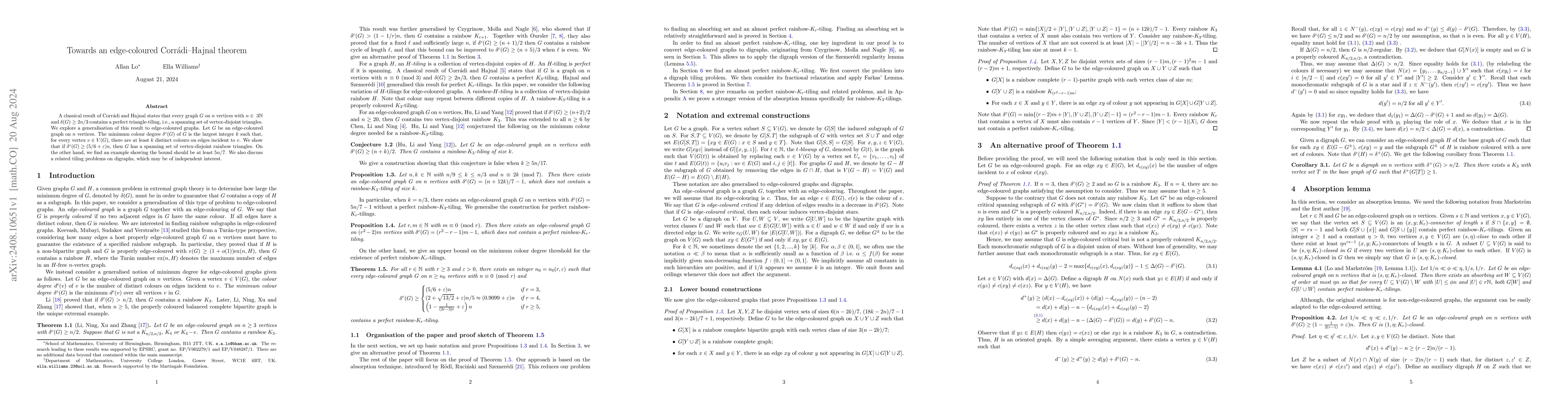 A classical result of Corr\'adi and Hajnal states that every graph $G$ on $n$ vertices with $n\in 3\mathbb{N}$ and $\delta(G) \ge 2n/3$ contains a perfect triangle-tiling, i.e.,\ a spanning set of vertex-disjoint triangles. We explore a generalisation of this result to edge-coloured graphs. Let $G$ be an edge-coloured graph on $n$ vertices. The minimum colour degree $\delta^c(G)$ of $G$ is the largest integer $k$ such that, for every vertex $v \in V(G)$, there are at least $k$ distinct colours on edges incident to $v$. We show that if $\delta^c(G) \ge (5/6 + \varepsilon) n$, then $G$ has a spanning set of vertex-disjoint rainbow triangles. On the other hand, we find an example showing the bound should be at least $5n/7$. We also discuss a related tiling problems on digraphs, which may be of independent interest.