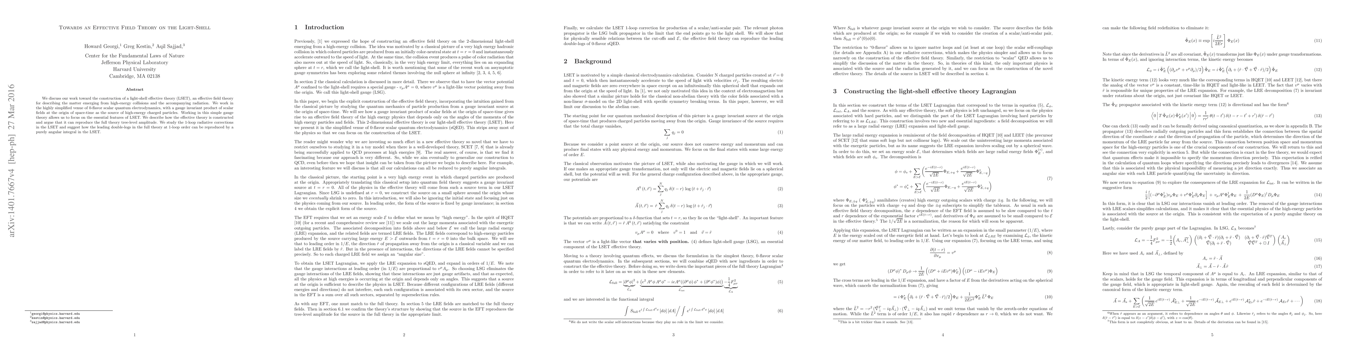 This research paper presents an effective field theory called Light-Shell Effective Theory (LSET) to describe high-energy collisions and radiation, aiming to reproduce the full theory's tree-level amplitude and 1-loop radiative corrections with a focus on simplified gauge invariant product of scalar fields.