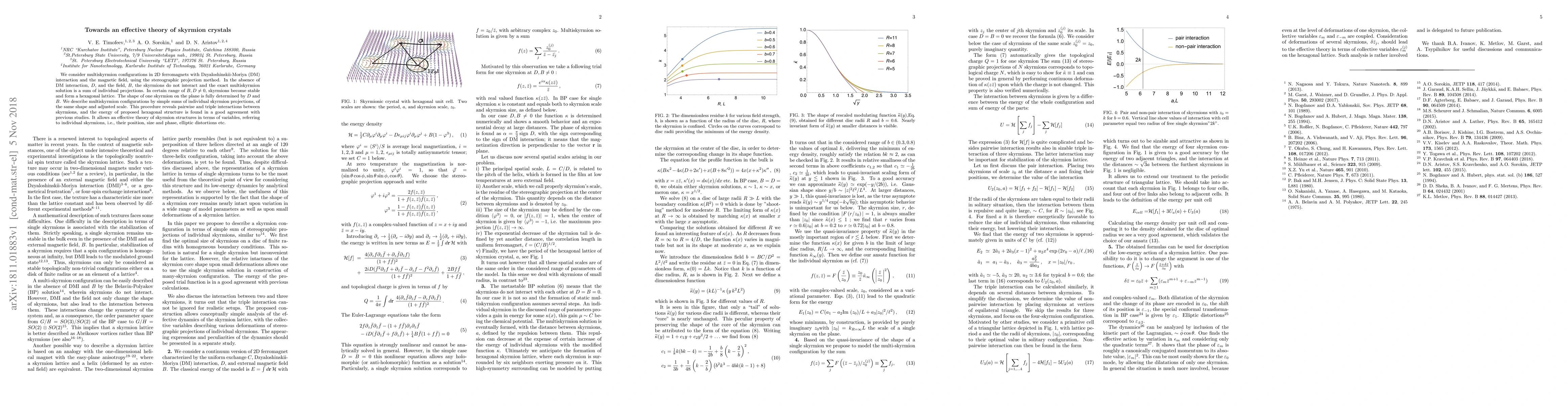 We consider multiskyrmion configurations in 2D ferromagnets with Dzyaloshinskii-Moriya (DM) interaction and the magnetic field, using the stereographic projection method. In the absence of DM interaction, $D$, and the field, $B$, the skyrmions do not interact and the exact multiskyrmion solution is a sum of individual projections. In certain range of $B, D\neq0$, skyrmions become stable and form a hexagonal lattice. The shape of one skyrmion on the plane is fully determined by $D$ and $B$. We describe multiskyrmion configurations by simple sums of individual skyrmion projections, of the same shape and adjusted scale. This procedure reveals pairwise and triple interactions between skyrmions, and the energy of proposed hexagonal structure is found in a good agreement with previous studies. It allows an effective theory of skyrmion structures in terms of variables, referring to individual skyrmions, i.e., their position, size and phase, elliptic distortions etc.