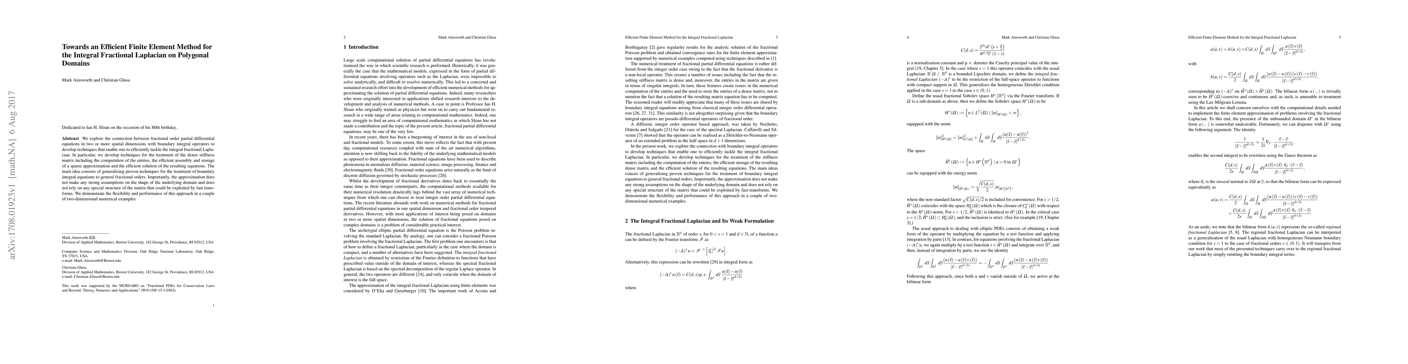We explore the connection between fractional order partial differential equations in two or more spatial dimensions with boundary integral operators to develop techniques that enable one to efficiently tackle the integral fractional Laplacian. In particular, we develop techniques for the treatment of the dense stiffness matrix including the computation of the entries, the efficient assembly and storage of a sparse approximation and the efficient solution of the resulting equations. The main idea consists of generalising proven techniques for the treatment of boundary integral equations to general fractional orders. Importantly, the approximation does not make any strong assumptions on the shape of the underlying domain and does not rely on any special structure of the matrix that could be exploited by fast transforms. We demonstrate the flexibility and performance of this approach in a couple of two-dimensional numerical examples.