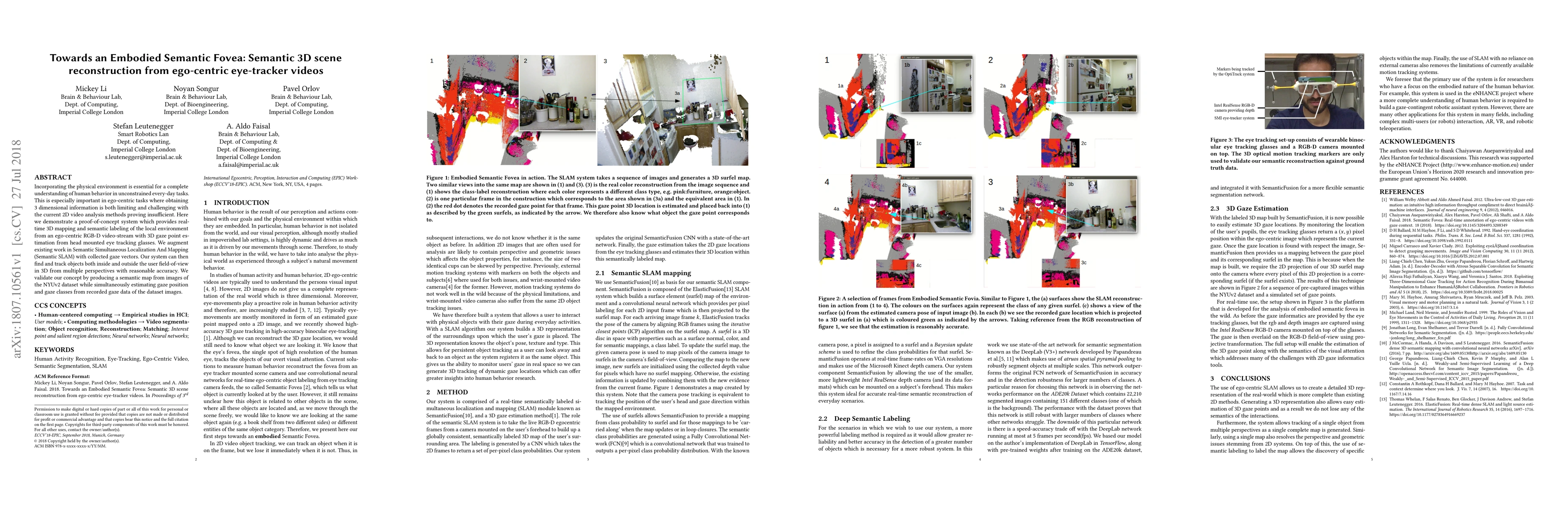 This paper presents a proof-of-concept system for real-time 3D semantic scene reconstruction from ego-centric eye-tracker videos, enhancing Semantic SLAM with gaze vectors to track objects in 3D. The system validates its approach using the NYUv2 dataset, demonstrating accurate 3D mapping and semantic labeling.
