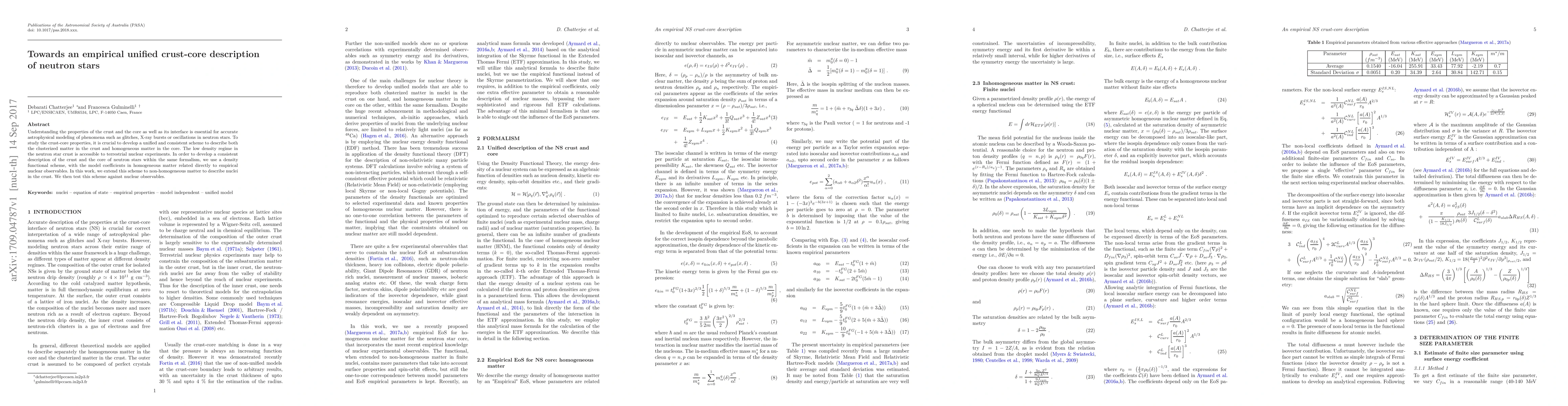 This paper develops a unified density functional scheme to describe both the crust and core of neutron stars, relating model coefficients to empirical nuclear data. The authors extend this scheme to non-homogeneous matter to model nuclei in the neutron star crust and validate it against nuclear observables.