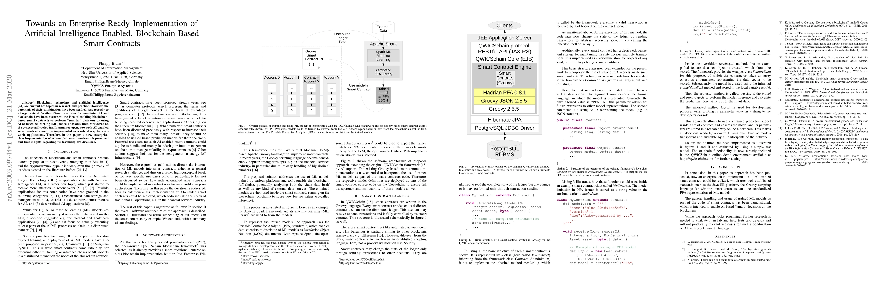 This paper introduces an enterprise-ready implementation of AI-enabled blockchain-based smart contracts, exploring the feasibility of using AI or machine learning models to enhance smart contract decision-making for real-world applications. Initial insights into the robustness and practicality of this approach are provided.