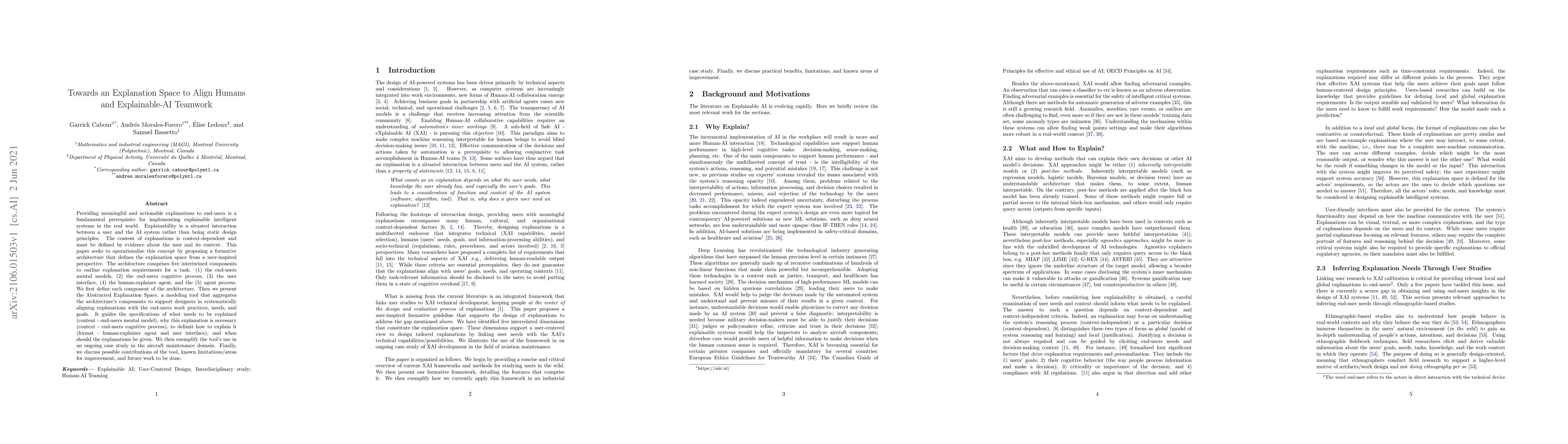 This paper proposes a formative architecture to define an explanation space for aligning human and explainable-AI teamwork, comprising components like end-users' mental models and cognitive processes. It introduces the Abstracted Explanation Space, a modeling tool to systematically align explanations with user practices and goals, exemplified in an aircraft maintenance case study.