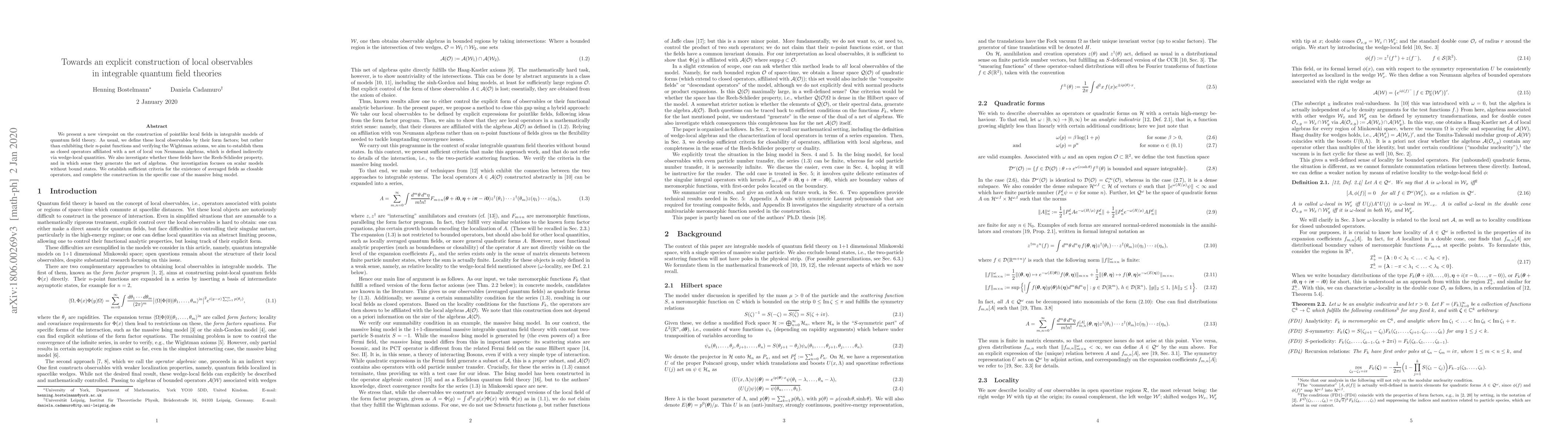 We present a new viewpoint on the construction of pointlike local fields in integrable models of quantum field theory. As usual, we define these local observables by their form factors; but rather than exhibiting their $n$-point functions and verifying the Wightman axioms, we aim to establish them as closed operators affiliated with a net of local von Neumann algebras, which is defined indirectly via wedge-local quantities. We also investigate whether these fields have the Reeh-Schlieder property, and in which sense they generate the net of algebras. Our investigation focuses on scalar models without bound states. We establish sufficient criteria for the existence of averaged fields as closable operators, and complete the construction in the specific case of the massive Ising model.