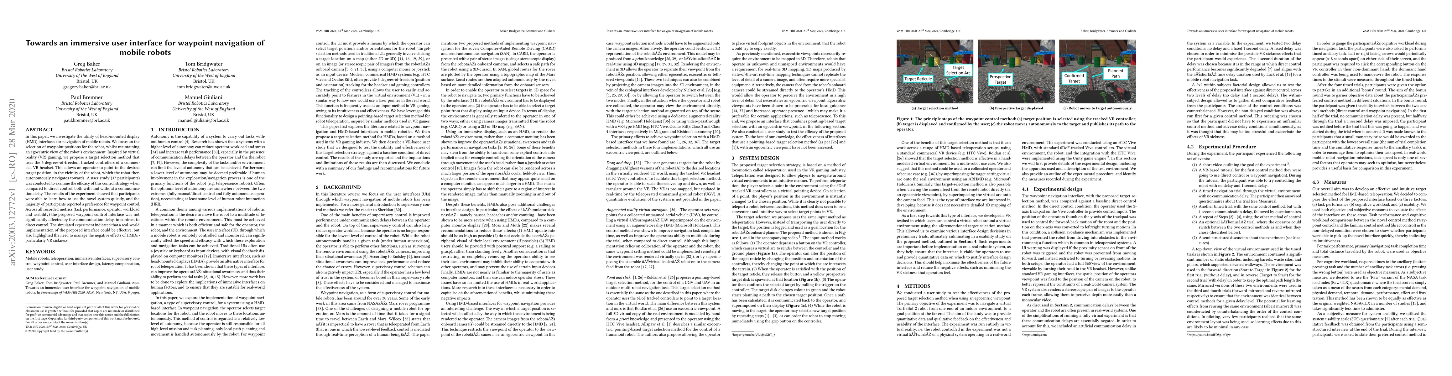 A study investigated the effectiveness of a head-mounted display interface for mobile robots to navigate to waypoint positions, finding that participants preferred this method over direct control and it was not significantly affected by communication delays.