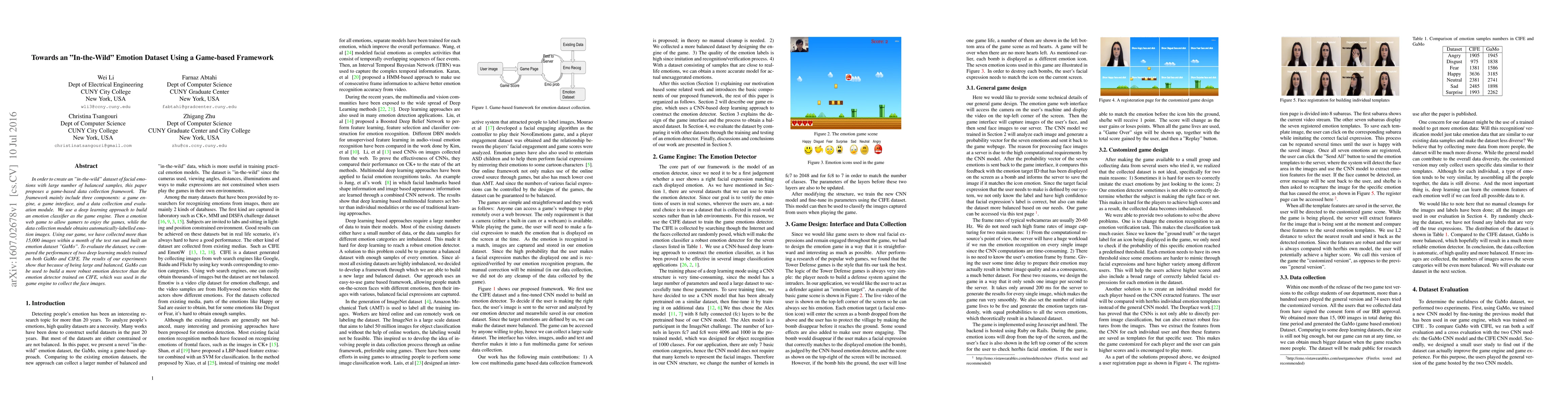 This paper proposes a game-based framework to create a large, balanced "in-the-wild" emotion dataset, "GaMo," by collecting over 15,000 emotion images in a month. The framework includes a deep learning-based emotion classifier, a game interface, and a data collection module, demonstrating improved emotion detection performance compared to existing datasets.