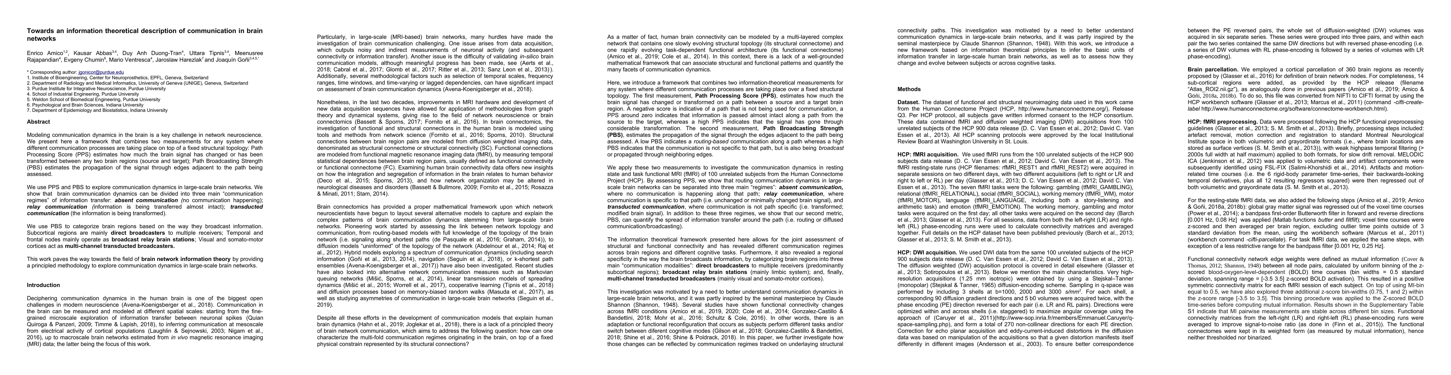 This paper introduces a framework combining Path Processing Score and Path Broadcasting Strength to model brain communication dynamics, revealing three main information transfer regimes: absent, relay, and transducted communication. It categorizes brain regions based on their information broadcasting roles, laying a foundation for brain network information theory.