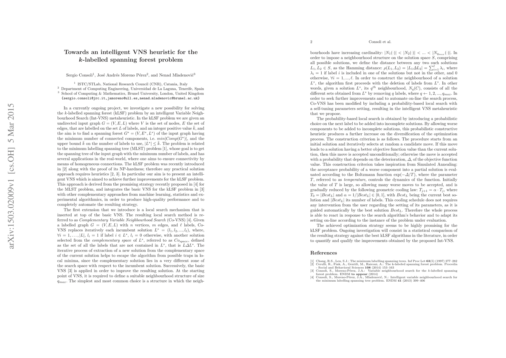 In a currently ongoing project, we investigate a new possibility for solving the k-labelled spanning forest (kLSF) problem by an intelligent Variable Neighbourhood Search (Int-VNS) metaheuristic. In the kLSF problem we are given an undirected input graph G and an integer positive value k, and the aim is to find a spanning forest of G having the minimum number of connected components and the upper bound k on the number of labels to use. The problem is related to the minimum labelling spanning tree (MLST) problem, whose goal is to get the spanning tree of the input graph with the minimum number of labels, and has several applications in the real world, where one aims to ensure connectivity by means of homogeneous connections. The Int-VNS metaheuristic that we propose for the kLSF problem is derived from the promising intelligent VNS strategy recently proposed for the MLST problem, and integrates the basic VNS for the kLSF problem with other complementary approaches from machine learning, statistics and experimental algorithmics, in order to produce high-quality performance and to completely automate the resulting strategy.