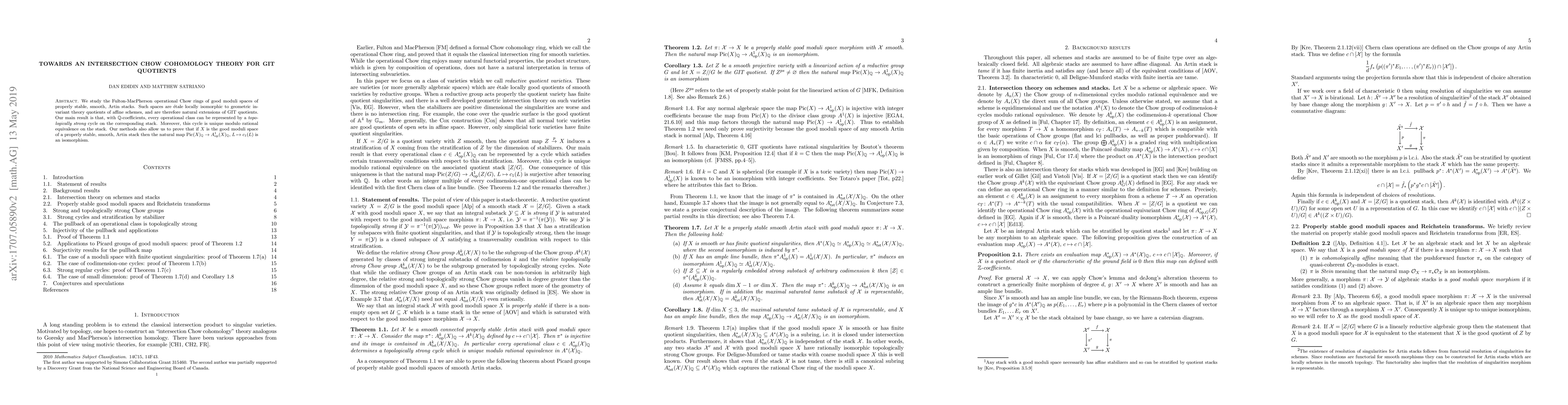 This paper develops an intersection Chow cohomology theory for good moduli spaces of properly stable, smooth Artin stacks, extending geometric invariant theory (GIT) quotients. The authors show that every operational class can be represented by a unique topologically strong cycle with rational coefficients, proving the surjectivity of the natural map from the Picard group to the first operational Chow group with rational coefficients.