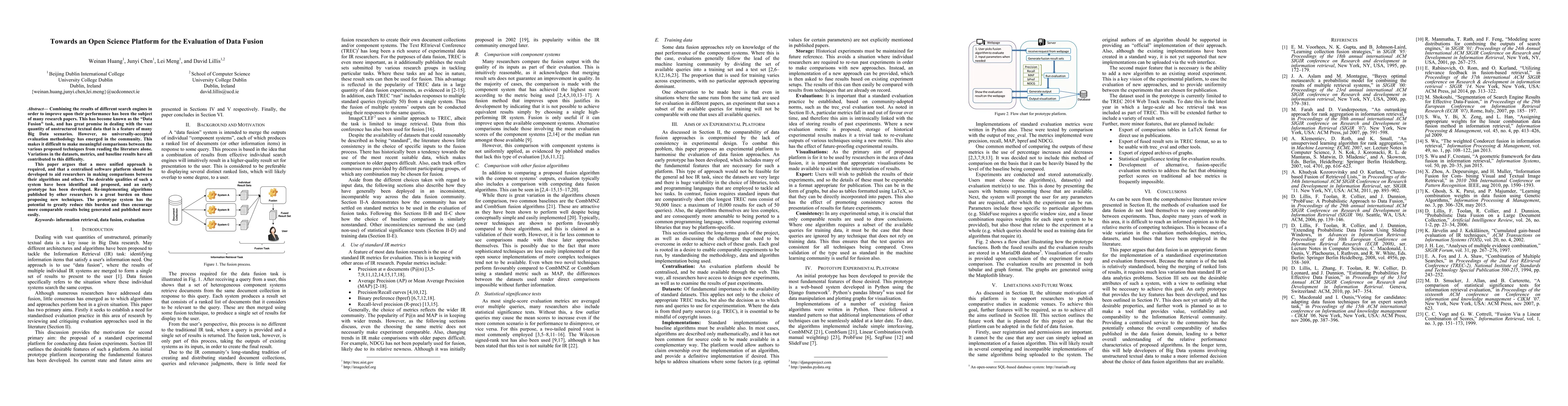 Combining the results of different search engines in order to improve upon their performance has been the subject of many research papers. This has become known as the "Data Fusion" task, and has great promise in dealing with the vast quantity of unstructured textual data that is a feature of many Big Data scenarios. However, no universally-accepted evaluation methodology has emerged in the community. This makes it difficult to make meaningful comparisons between the various proposed techniques from reading the literature alone. Variations in the datasets, metrics, and baseline results have all contributed to this difficulty. This paper argues that a more unified approach is required, and that a centralised software platform should be developed to aid researchers in making comparisons between their algorithms and others. The desirable qualities of such a system have been identified and proposed, and an early prototype has been developed. Re-implementing algorithms published by other researchers is a great burden on those proposing new techniques. The prototype system has the potential to greatly reduce this burden and thus encourage more comparable results being generated and published more easily.