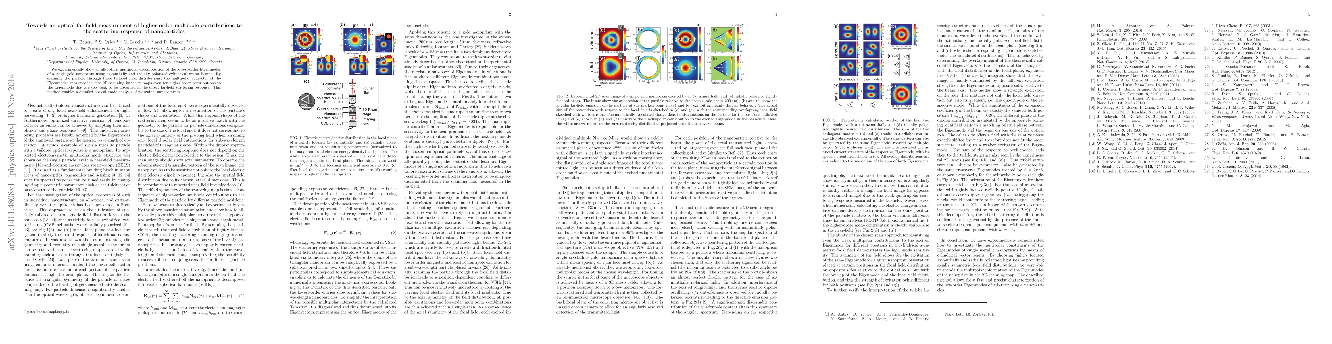 This paper demonstrates an all-optical method to decompose and analyze the multipolar scattering modes of a gold nanoprism using tailored cylindrical vector beams, revealing even weak higher-order contributions through 2D-scanning intensity maps. This technique provides a detailed optical mode analysis of individual nanoparticles.