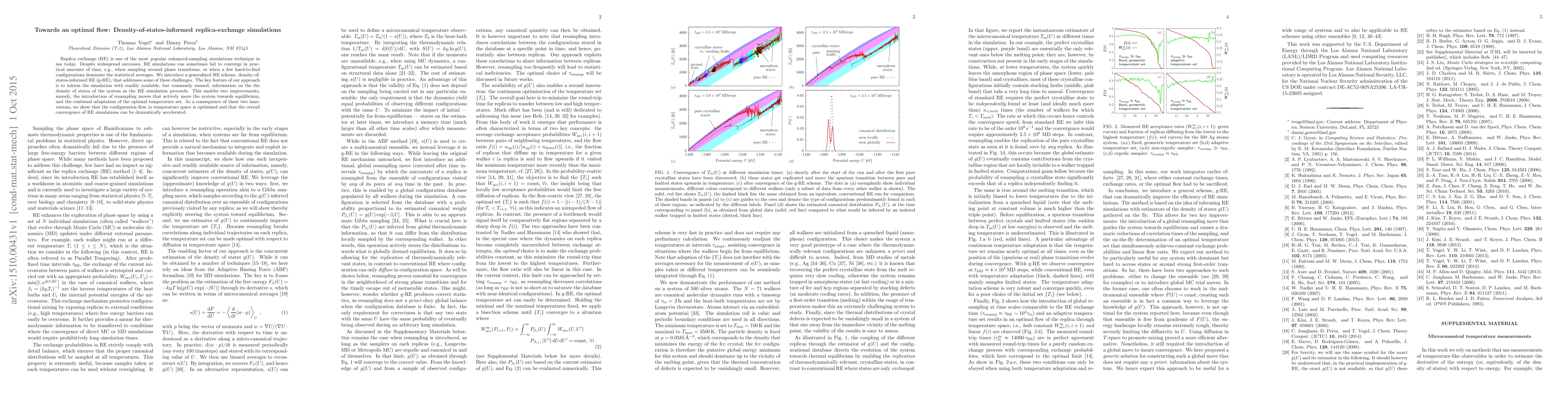 The research introduces a new replica exchange simulation method, g-RE, which utilizes density-of-states information to improve convergence. This method includes resampling moves to guide the system towards equilibrium and adaptive temperature sets, leading to optimized configuration flow and accelerated overall convergence.