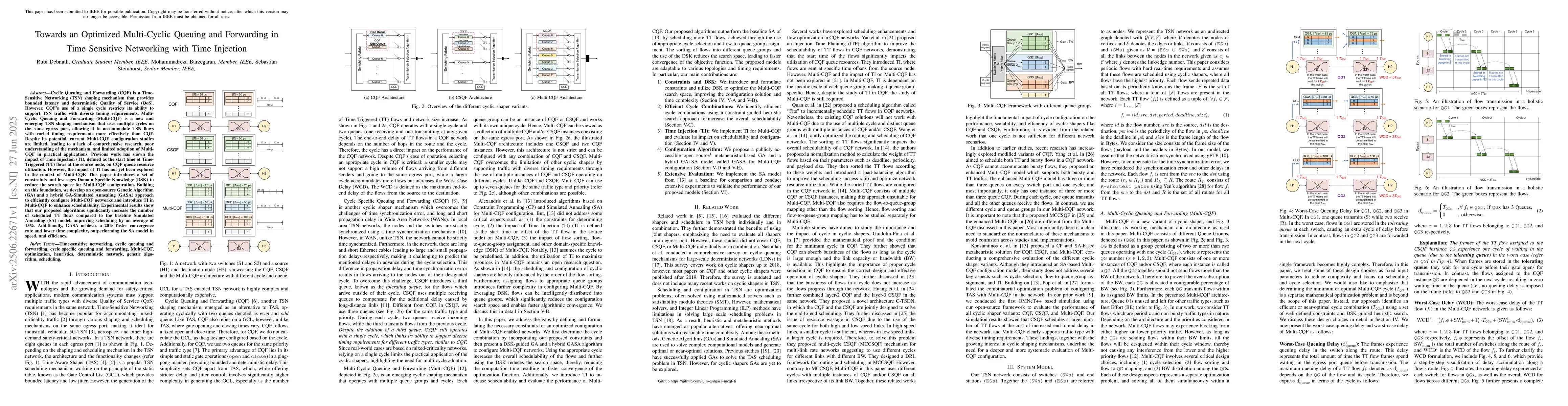 Cyclic Queuing and Forwarding (CQF) is a Time-Sensitive Networking (TSN) shaping mechanism that provides bounded latency and deterministic Quality of Service (QoS). However, CQF's use of a single cycle restricts its ability to support TSN traffic with diverse timing requirements. Multi-Cyclic Queuing and Forwarding (Multi-CQF) is a new and emerging TSN shaping mechanism that uses multiple cycles on the same egress port, allowing it to accommodate TSN flows with varied timing requirements more effectively than CQF. Despite its potential, current Multi-CQF configuration studies are limited, leading to a lack of comprehensive research, poor understanding of the mechanism, and limited adoption of Multi-CQF in practical applications. Previous work has shown the impact of Time Injection (TI), defined as the start time of Time-Triggered (TT) flows at the source node, on CQF queue resource utilization. However, the impact of TI has not yet been explored in the context of Multi-CQF. This paper introduces a set of constraints and leverages Domain Specific Knowledge (DSK) to reduce the search space for Multi-CQF configuration. Building on this foundation, we develop an open-source Genetic Algorithm (GA) and a hybrid GA-Simulated Annealing (GASA) approach to efficiently configure Multi-CQF networks and introduce TI in Multi-CQF to enhance schedulability. Experimental results show that our proposed algorithms significantly increase the number of scheduled TT flows compared to the baseline Simulated Annealing (SA) model, improving scheduling by an average of 15%. Additionally, GASA achieves a 20% faster convergence rate and lower time complexity, outperforming the SA model in speed, and efficiency.