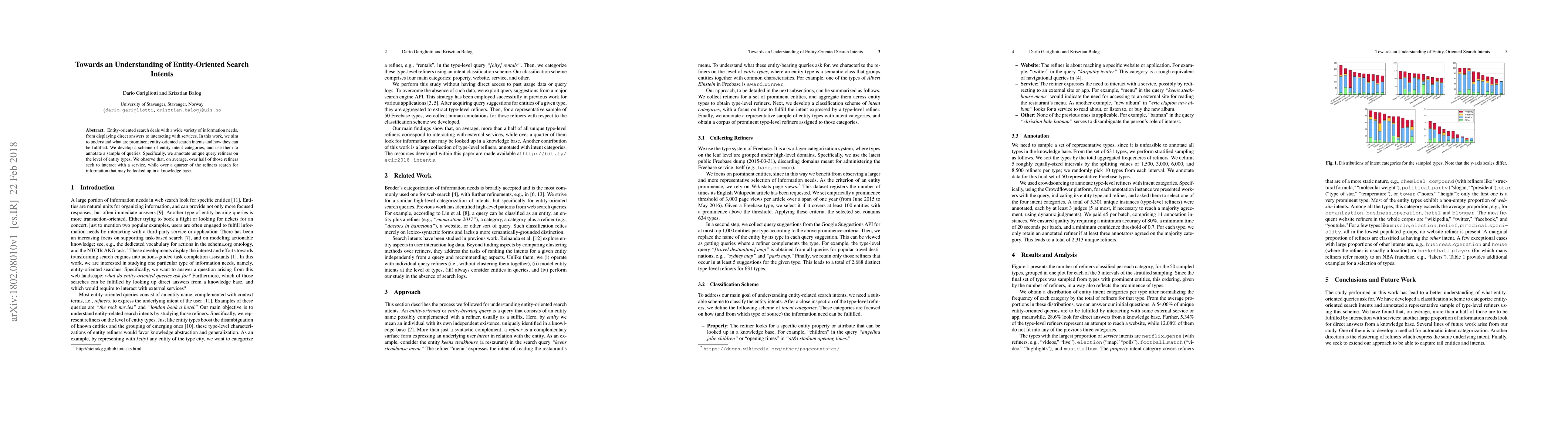 This paper develops a scheme to categorize prominent entity-oriented search intents and annotates queries based on these categories, finding that over half aim to interact with services, while over a quarter seek information from knowledge bases.