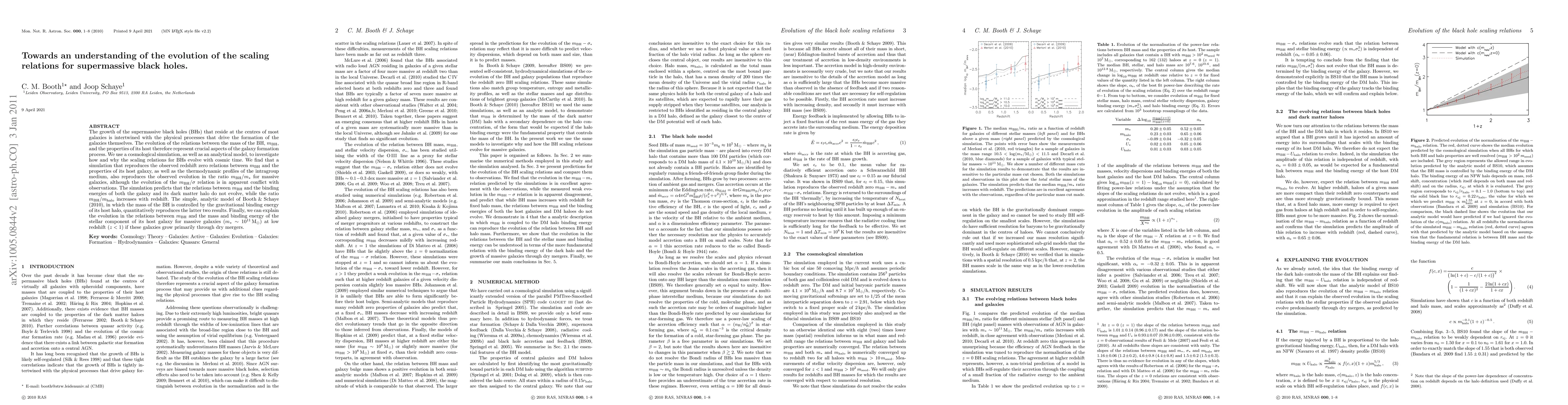 The growth of the supermassive black holes (BHs) that reside at the centres of most galaxies is intertwined with the physical processes that drive the formation of the galaxies themselves. The evolution of the relations between the mass of the BH, m_BH, and the properties of its host therefore represent crucial aspects of the galaxy formation process. We use a cosmological simulation, as well as an analytical model, to investigate how and why the scaling relations for BHs evolve with cosmic time. We find that a simulation that reproduces the observed redshift zero relations between m_BH and the properties of its host galaxy, as well as the thermodynamic profiles of the intragroup medium, also reproduces the observed evolution in the ratio m_BH/m_s for massive galaxies, although the evolution of the m_BH/sigma relation is in apparent conflict with observations. The simulation predicts that the relations between m_BH and the binding energies of both the galaxy and its dark matter halo do not evolve, while the ratio m_BH/m_halo increases with redshift. The simple, analytic model of Booth & Schaye (2010), in which the mass of the BH is controlled by the gravitational binding energy of its host halo, quantitatively reproduces the latter two results. Finally, we can explain the evolution in the relations between m_BH and the mass and binding energy of the stellar component of its host galaxy for massive galaxies (m_s~10^11 M_sun) at low redshift (z<1) if these galaxies grow primarily through dry mergers.