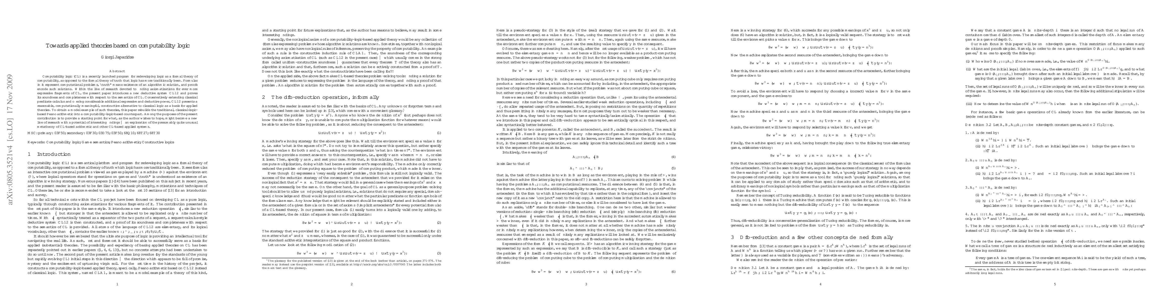 Computability logic (CL) (see http://www.cis.upenn.edu/~giorgi/cl.html) is a recently launched program for redeveloping logic as a formal theory of computability, as opposed to the formal theory of truth that logic has more traditionally been. Formulas in it represent computational problems, "truth" means existence of an algorithmic solution, and proofs encode such solutions. Within the line of research devoted to finding axiomatizations for ever more expressive fragments of CL, the present paper introduces a new deductive system CL12 and proves its soundness and completeness with respect to the semantics of CL. Conservatively extending classical predicate calculus and offering considerable additional expressive and deductive power, CL12 presents a reasonable, computationally meaningful, constructive alternative to classical logic as a basis for applied theories. To obtain a model example of such theories, this paper rebuilds the traditional, classical-logic-based Peano arithmetic into a computability-logic-based counterpart. Among the purposes of the present contribution is to provide a starting point for what, as the author wishes to hope, might become a new line of research with a potential of interesting findings -- an exploration of the presumably quite unusual metatheory of CL-based arithmetic and other CL-based applied systems.