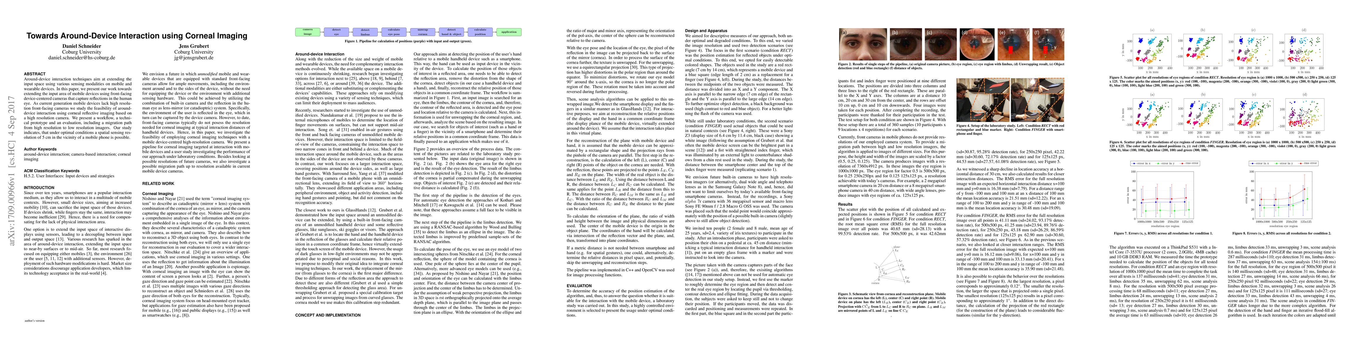 This paper explores around-device interaction using corneal reflective imaging with high-resolution cameras on mobile devices, demonstrating a spatial sensing resolution of 5 cm under optimal conditions. It presents a prototype and a migration path for lower-resolution imagers.