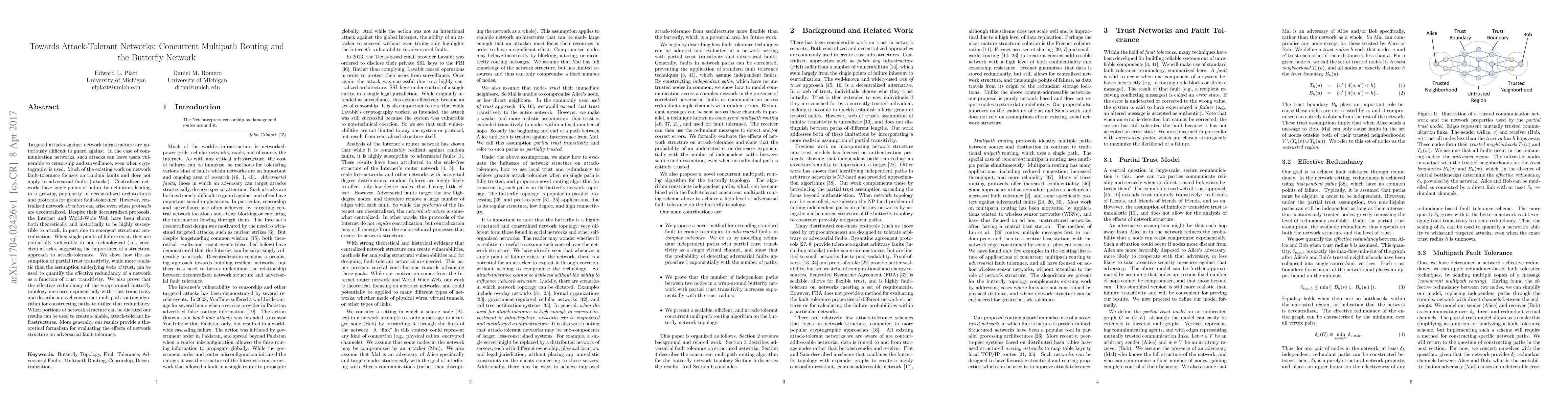 Targeted attacks against network infrastructure are notoriously difficult to guard against. In the case of communication networks, such attacks can leave users vulnerable to censorship and surveillance, even when cryptography is used. Much of the existing work on network fault-tolerance focuses on random faults and does not apply to adversarial faults (attacks). Centralized networks have single points of failure by definition, leading to a growing popularity in decentralized architectures and protocols for greater fault-tolerance. However, centralized network structure can arise even when protocols are decentralized. Despite their decentralized protocols, the Internet and World-Wide Web have been shown both theoretically and historically to be highly susceptible to attack, in part due to emergent structural centralization. When single points of failure exist, they are potentially vulnerable to non-technological (i.e., coercive) attacks, suggesting the importance of a structural approach to attack-tolerance. We show how the assumption of partial trust transitivity, while more realistic than the assumption underlying webs of trust, can be used to quantify the effective redundancy of a network as a function of trust transitivity. We also prove that the effective redundancy of the wrap-around butterfly topology increases exponentially with trust transitivity and describe a novel concurrent multipath routing algorithm for constructing paths to utilize that redundancy. When portions of network structure can be dictated our results can be used to create scalable, attack-tolerant infrastructures. More generally, our results provide a theoretical formalism for evaluating the effects of network structure on adversarial fault-tolerance.