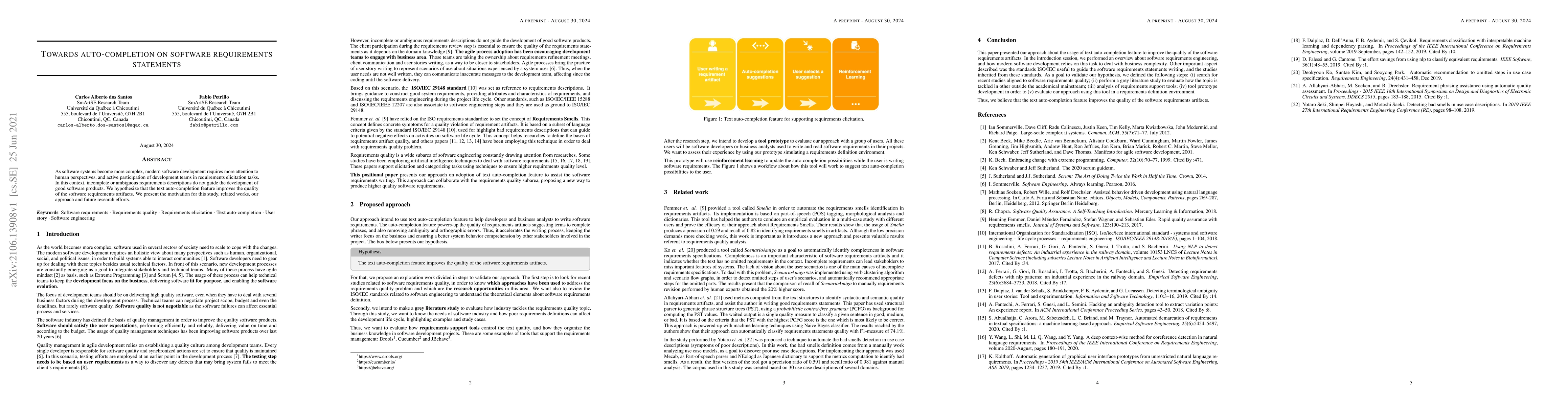 This paper explores how text auto-completion can enhance the quality of software requirements by addressing incompleteness and ambiguity. The authors propose a method to improve requirements elicitation and outline future research directions.