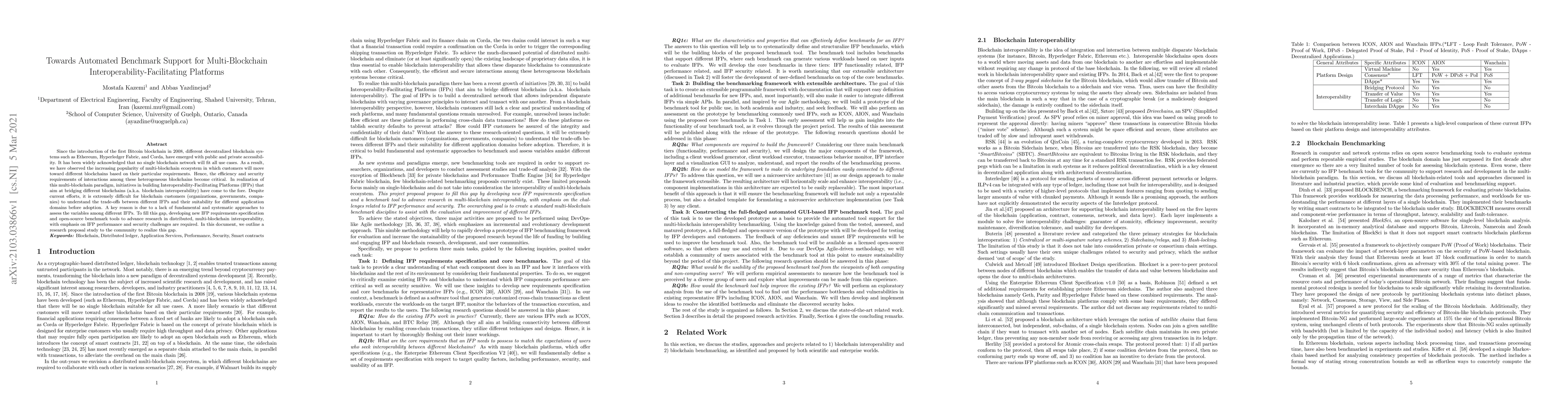 Since the introduction of the first Bitcoin blockchain in 2008, different decentralized blockchain systems such as Ethereum, Hyperledger Fabric, and Corda, have emerged with public and private accessibility. It has been widely acknowledged that no single blockchain network will fit all use cases. As a result, we have observed the increasing popularity of multi-blockchain ecosystem in which customers will move toward different blockchains based on their particular requirements. Hence, the efficiency and security requirements of interactions among these heterogeneous blockchains become critical. In realization of this multi-blockchain paradigm, initiatives in building Interoperability-Facilitating Platforms (IFPs) that aim at bridging different blockchains (a.k.a. blockchain interoperability) have come to the fore. Despite current efforts, it is extremely difficult for blockchain customers (organizations, governments, companies) to understand the trade-offs between different IFPs and their suitability for different application domains before adoption. A key reason is due to a lack of fundamental and systematic approaches to assess the variables among different IFPs. To fill this gap, developing new IFP requirements specification and open-source benchmark tools to advance research in distributed, multi-blockchain interoperability, with emphasis on IFP performance and security challenges are required. In this document, we outline a research proposal study to the community to realize this gap.