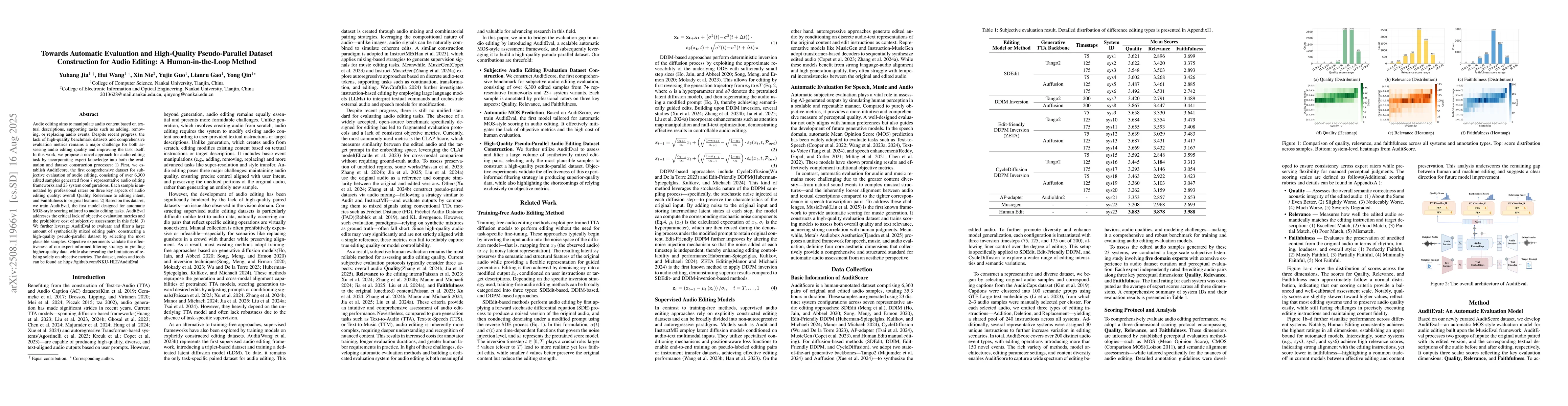 Audio editing aims to manipulate audio content based on textual descriptions, supporting tasks such as adding, removing, or replacing audio events. Despite recent progress, the lack of high-quality benchmark datasets and comprehensive evaluation metrics remains a major challenge for both assessing audio editing quality and improving the task itself. In this work, we propose a novel approach for audio editing task by incorporating expert knowledge into both the evaluation and dataset construction processes: 1) First, we establish AuditScore, the first comprehensive dataset for subjective evaluation of audio editing, consisting of over 6,300 edited samples generated from 7 representative audio editing frameworks and 23 system configurations. Each sample is annotated by professional raters on three key aspects of audio editing quality: overall Quality, Relevance to editing intent, and Faithfulness to original features. 2) Based on this dataset, we train AuditEval, the first model designed for automatic MOS-style scoring tailored to audio editing tasks. AuditEval addresses the critical lack of objective evaluation metrics and the prohibitive cost of subjective assessment in this field. 3) We further leverage AuditEval to evaluate and filter a large amount of synthetically mixed editing pairs, constructing a high-quality pseudo-parallel dataset by selecting the most plausible samples. Objective experiments validate the effectiveness of our expert-informed filtering strategy in yielding higher-quality data, while also revealing the limitations of relying solely on objective metrics. The dataset, codes and tools can be found at: https://github.com/NKU-HLT/AuditEval.