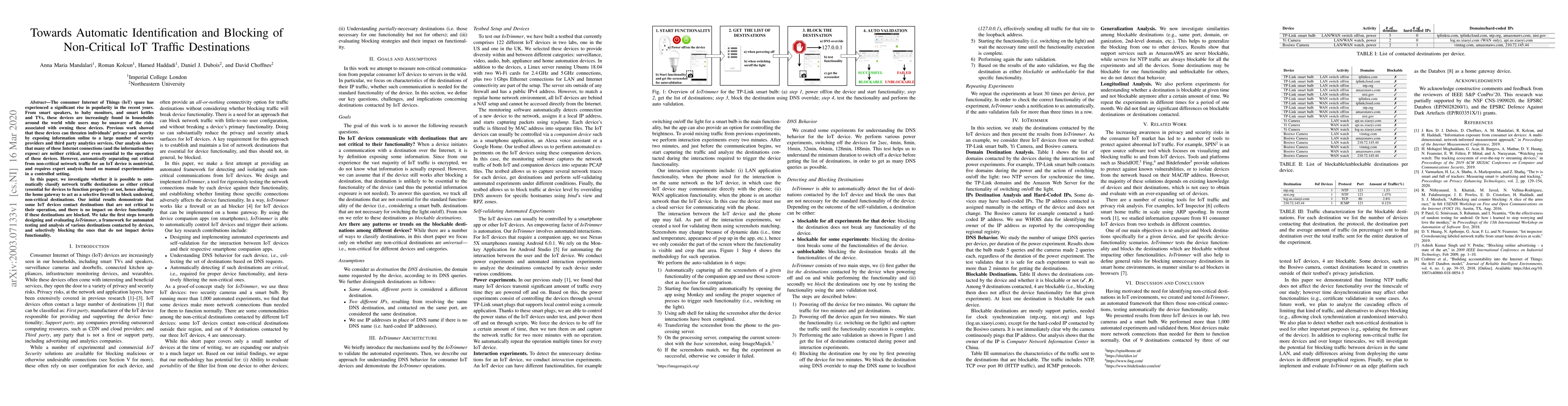 The consumer Internet of Things (IoT) space has experienced a significant rise in popularity in the recent years. From smart speakers, to baby monitors, and smart kettles and TVs, these devices are increasingly found in households around the world while users may be unaware of the risks associated with owning these devices. Previous work showed that these devices can threaten individuals' privacy and security by exposing information online to a large number of service providers and third party analytics services. Our analysis shows that many of these Internet connections (and the information they expose) are neither critical, nor even essential to the operation of these devices. However, automatically separating out critical from non-critical network traffic for an IoT device is nontrivial, and requires expert analysis based on manual experimentation in a controlled setting. In this paper, we investigate whether it is possible to automatically classify network traffic destinations as either critical (essential for devices to function properly) or not, hence allowing the home gateway to act as a selective firewall to block undesired, non-critical destinations. Our initial results demonstrate that some IoT devices contact destinations that are not critical to their operation, and there is no impact on device functionality if these destinations are blocked. We take the first steps towards designing and evaluating IoTrimmer, a framework for automated testing and analysis of various destinations contacted by devices, and selectively blocking the ones that do not impact device functionality.