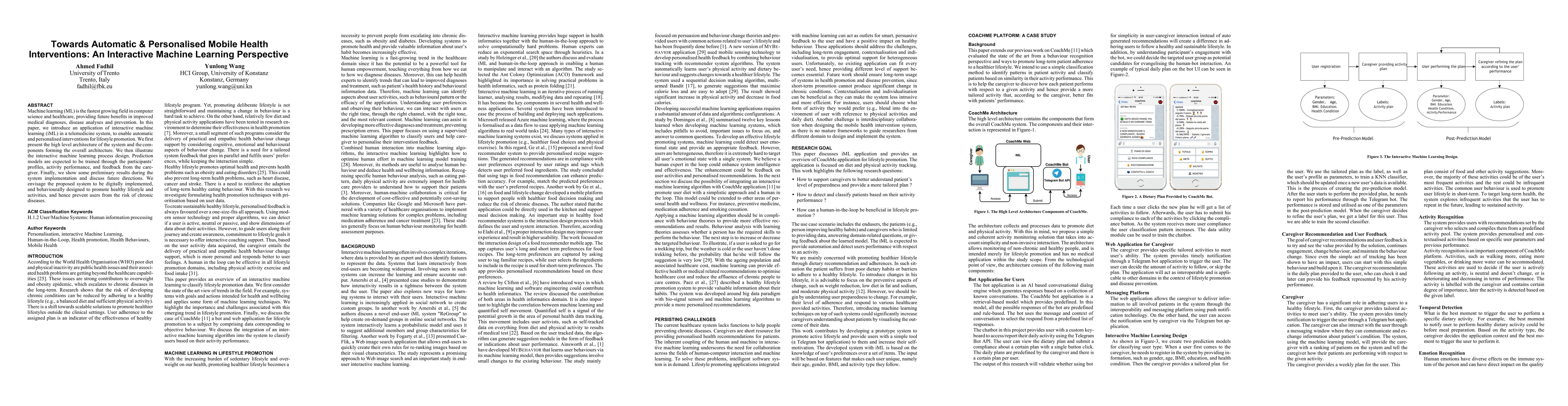 This paper explores the application of interactive machine learning in a telemedicine system to enable automatic and personalized mobile health interventions for lifestyle promotion. The authors present the system architecture, interactive machine learning process, and preliminary results, aiming to digitally promote healthy lifestyles and prevent chronic diseases.