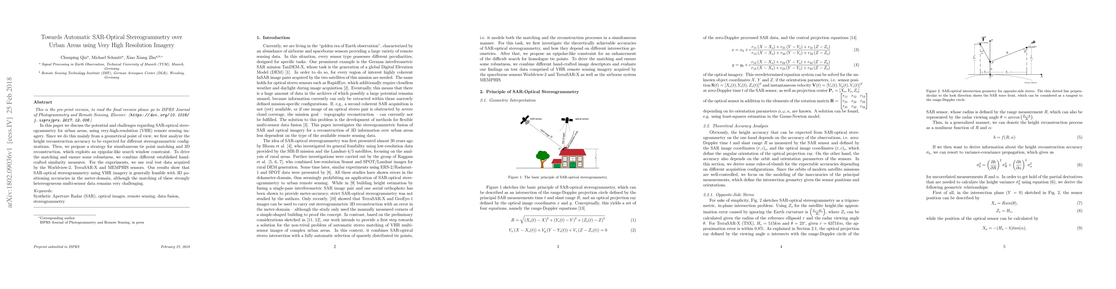 In this paper we discuss the potential and challenges regarding SAR-optical stereogrammetry for urban areas, using very-high-resolution (VHR) remote sensing imagery. Since we do this mainly from a geometrical point of view, we first analyze the height reconstruction accuracy to be expected for different stereogrammetric configurations. Then, we propose a strategy for simultaneous tie point matching and 3D reconstruction, which exploits an epipolar-like search window constraint. To drive the matching and ensure some robustness, we combine different established handcrafted similarity measures. For the experiments, we use real test data acquired by the Worldview-2, TerraSAR-X and MEMPHIS sensors. Our results show that SAR-optical stereogrammetry using VHR imagery is generally feasible with 3D positioning accuracies in the meter-domain, although the matching of these strongly hetereogeneous multi-sensor data remains very challenging. Keywords: Synthetic Aperture Radar (SAR), optical images, remote sensing, data fusion, stereogrammetry