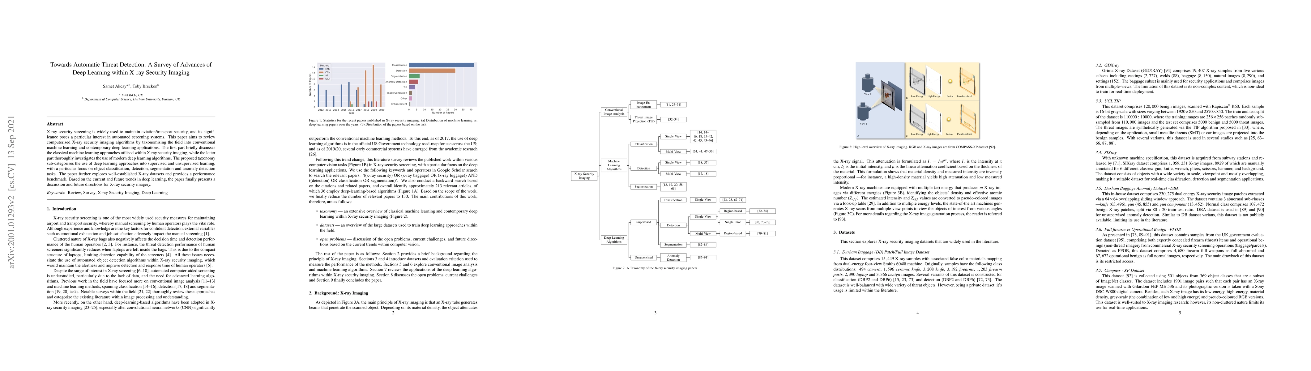 The paper presents a taxonomy of conventional and deep learning algorithms in X-ray security imaging, providing a detailed review and comparison of their performance.