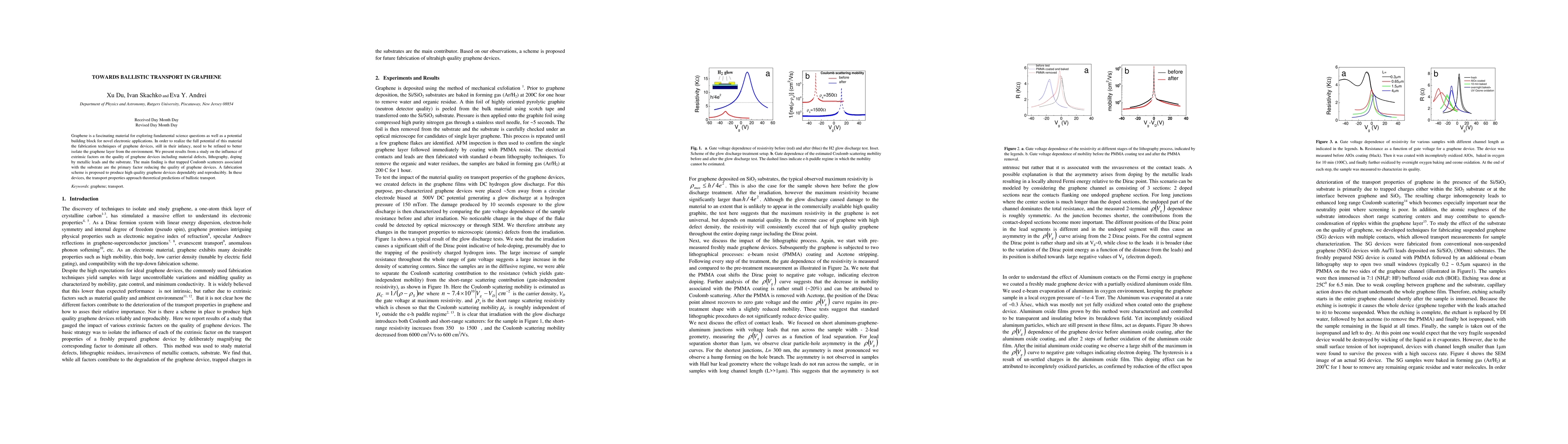 This study investigates extrinsic factors impacting graphene device quality, identifying substrate-related Coulomb scatterers as the main hindrance to optimal performance. A proposed fabrication method aims to mitigate these factors, achieving transport properties close to theoretical ballistic transport predictions.