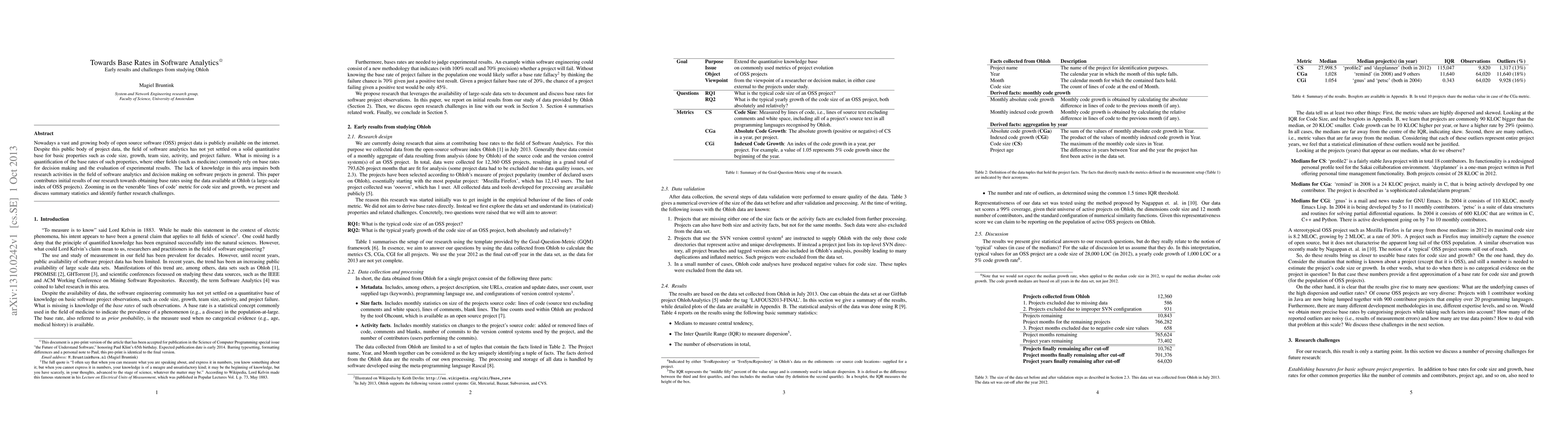 This paper investigates the need for base rates in software analytics to inform decision-making and research, highlighting the lack of quantitative data on properties like code size and growth in open source software. Initial results from analyzing Ohloh data provide summary statistics on 'lines of code' and identify further research challenges.