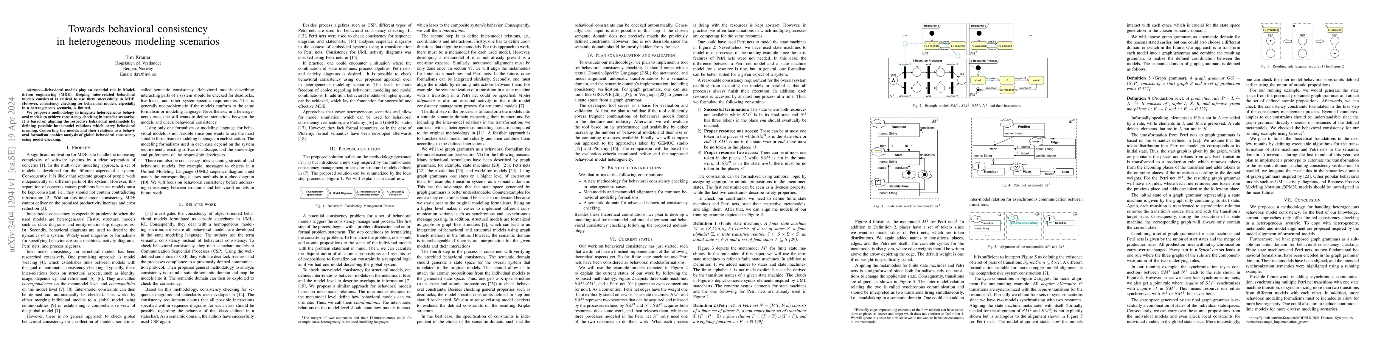 This research proposes a methodology to ensure behavioral consistency across heterogeneous behavioral models in Model-driven engineering (MDE) by aligning their metamodels and defining inter-model relations. It employs model-checking for global behavioral consistency analysis.