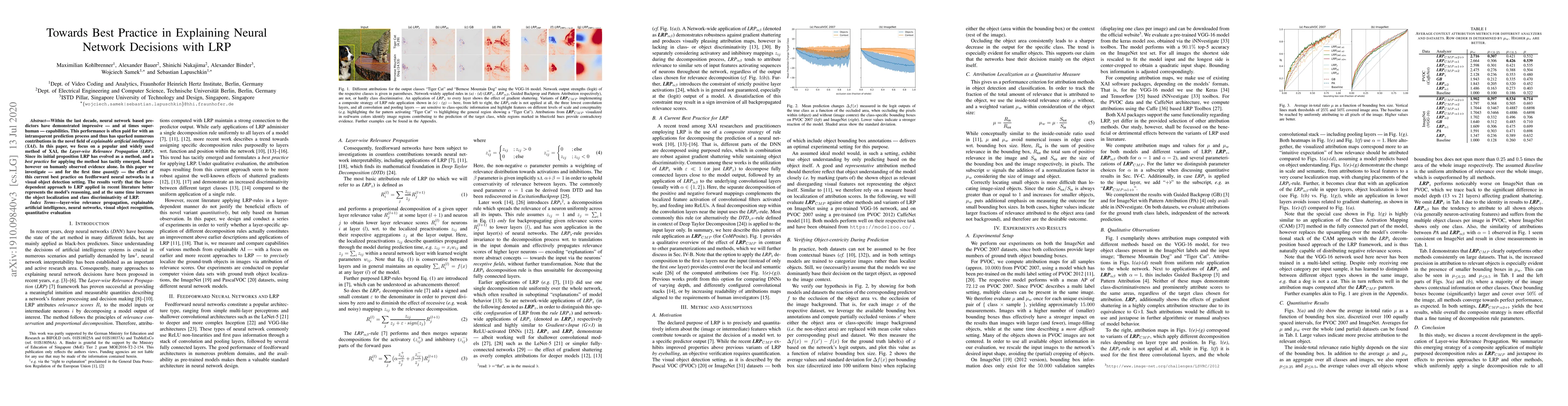 Within the last decade, neural network based predictors have demonstrated impressive - and at times super-human - capabilities. This performance is often paid for with an intransparent prediction process and thus has sparked numerous contributions in the novel field of explainable artificial intelligence (XAI). In this paper, we focus on a popular and widely used method of XAI, the Layer-wise Relevance Propagation (LRP). Since its initial proposition LRP has evolved as a method, and a best practice for applying the method has tacitly emerged, based however on humanly observed evidence alone. In this paper we investigate - and for the first time quantify - the effect of this current best practice on feedforward neural networks in a visual object detection setting. The results verify that the layer-dependent approach to LRP applied in recent literature better represents the model's reasoning, and at the same time increases the object localization and class discriminativity of LRP.
