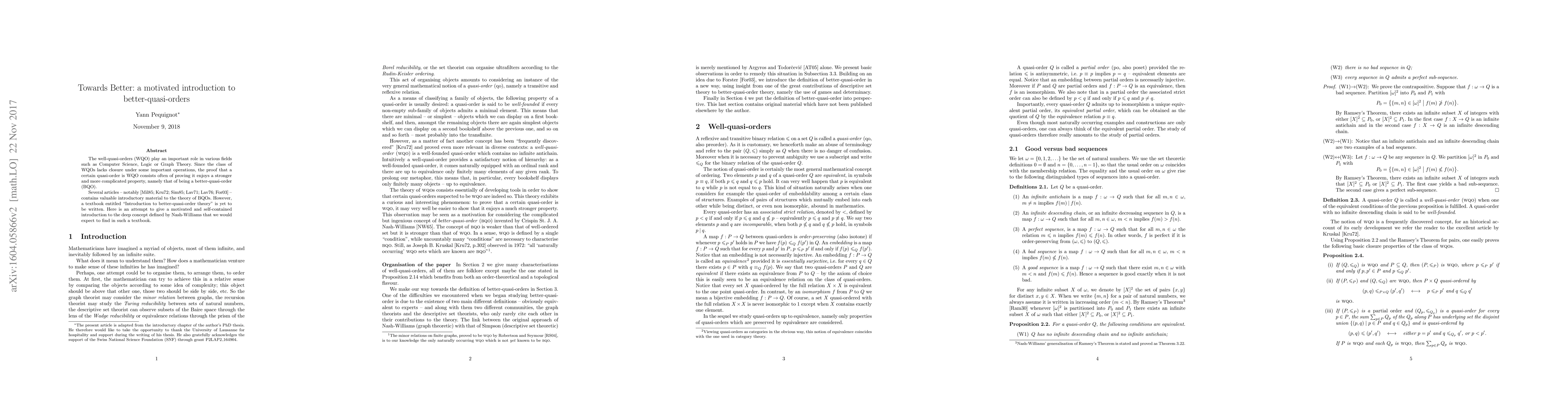 This paper provides a motivated introduction to better-quasi-orders (BQOs), a concept in mathematics that fills the gap for well-quasi-orders lacking closure under certain operations. The text aims to provide a self-contained overview of BQO theory, a crucial area in fields like computer science and graph theory.