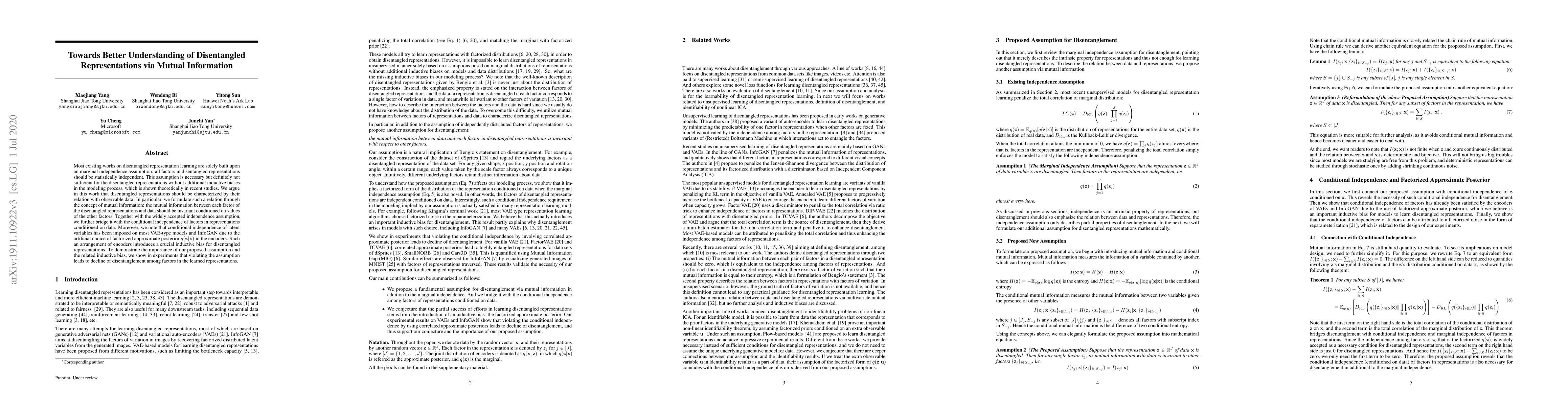 This paper proposes that disentangled representations should maintain mutual information invariance conditioned on other factors, complementing the marginal independence assumption. It argues that this mutual information criterion, along with conditional independence, provides a crucial inductive bias that enhances disentanglement, as demonstrated by experiments showing reduced disentanglement when the assumption is violated.