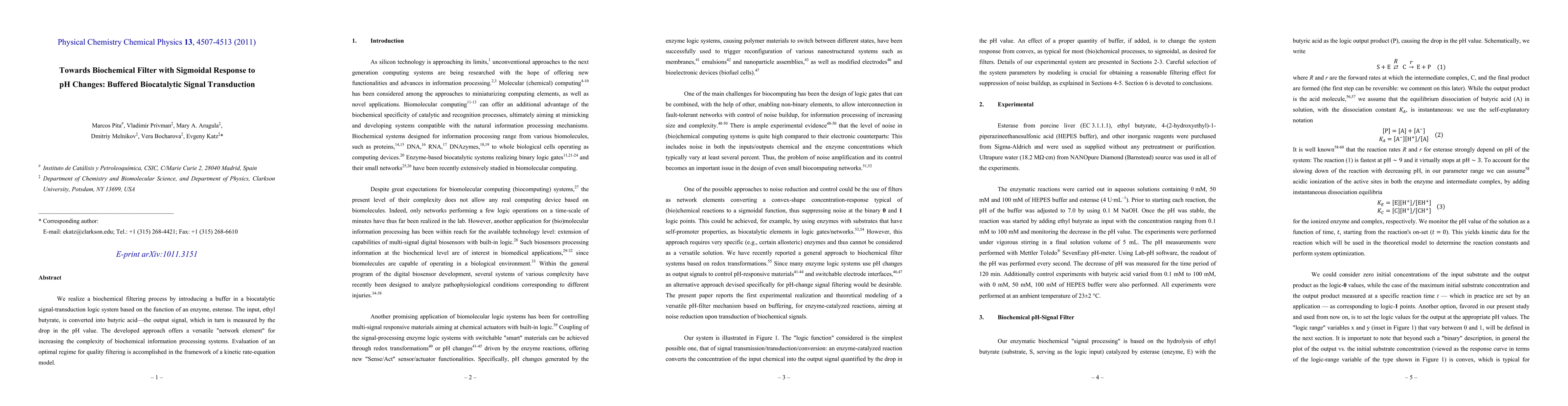 This paper develops a biochemical filter with a sigmoidal response to pH changes, utilizing an esterase-based biocatalytic signal transduction system. The system converts ethyl butyrate into butyric acid, monitored via pH drop, and aims to enhance the complexity of biochemical information processing networks.