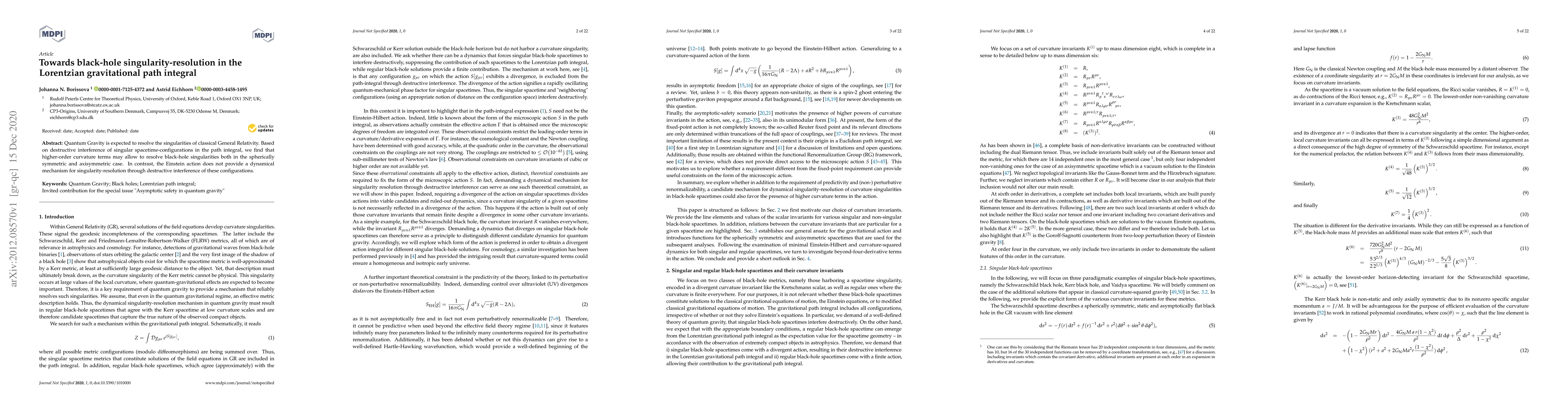 Quantum Gravity is expected to resolve the singularities of classical General Relativity. Based on destructive interference of singular spacetime-configurations in the path integral, we find that higher-order curvature terms may allow to resolve black-hole singularities both in the spherically symmetric and axisymmetric case. In contrast, the Einstein action does not provide a dynamical mechanism for singularity-resolution through destructive interference of these configurations.