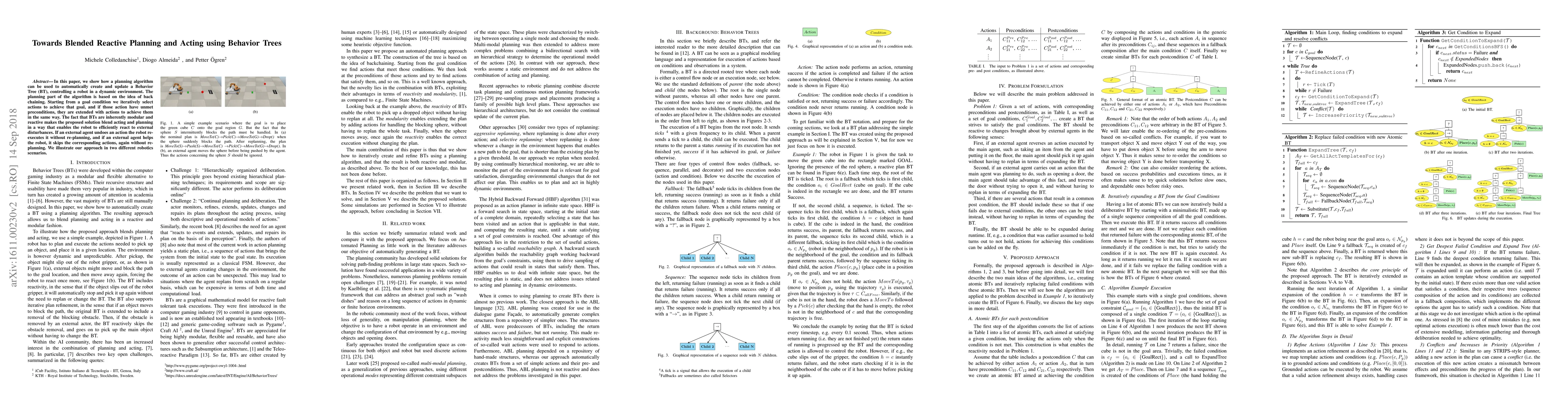 This paper proposes a method to blend reactive planning and acting using Behavior Trees, where a planning algorithm iteratively constructs and updates a Behavior Tree based on back chaining to achieve goals dynamically. The modular and reactive nature of Behavior Trees allows the robot to efficiently adapt to external disturbances without re-planning.