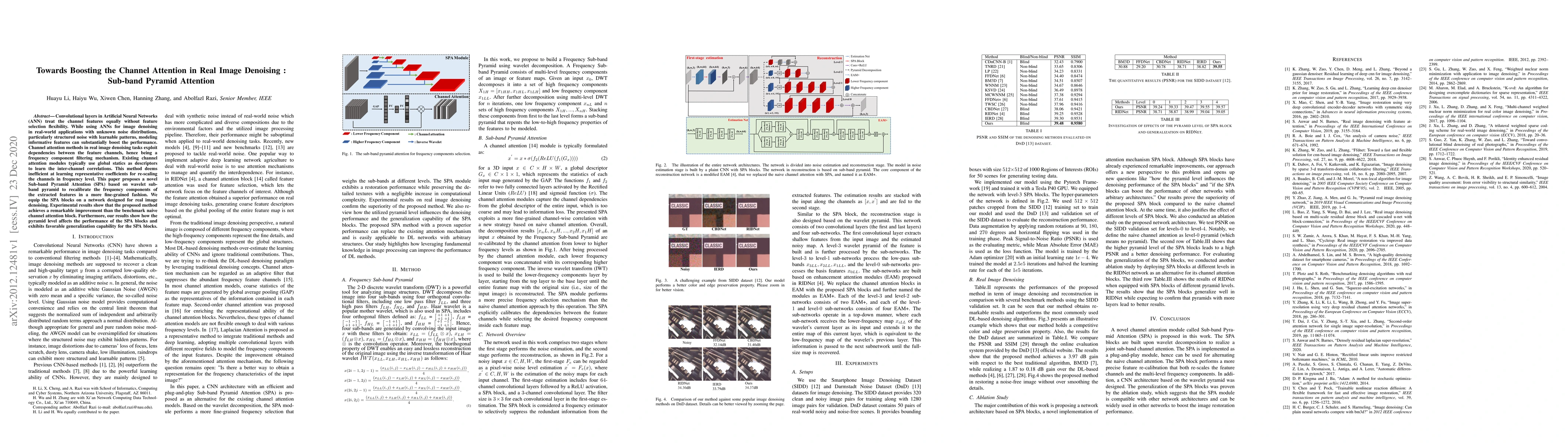 This paper introduces a Sub-band Pyramid Attention (SPA) method based on wavelet sub-band pyramid to enhance channel attention in real image denoising. The SPA recalibrates frequency components more finely, leading to significant performance improvements over traditional channel attention methods.