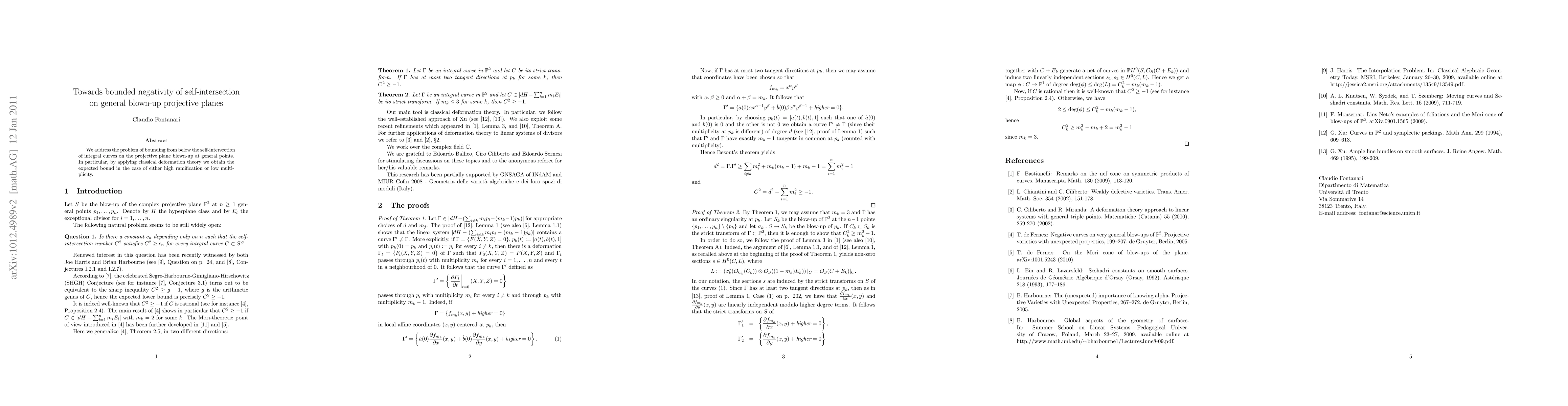 This paper investigates the self-intersection of integral curves on a projective plane after blowing up at general points, using classical deformation theory to establish a lower bound for the self-intersection under conditions of high ramification or low multiplicity.