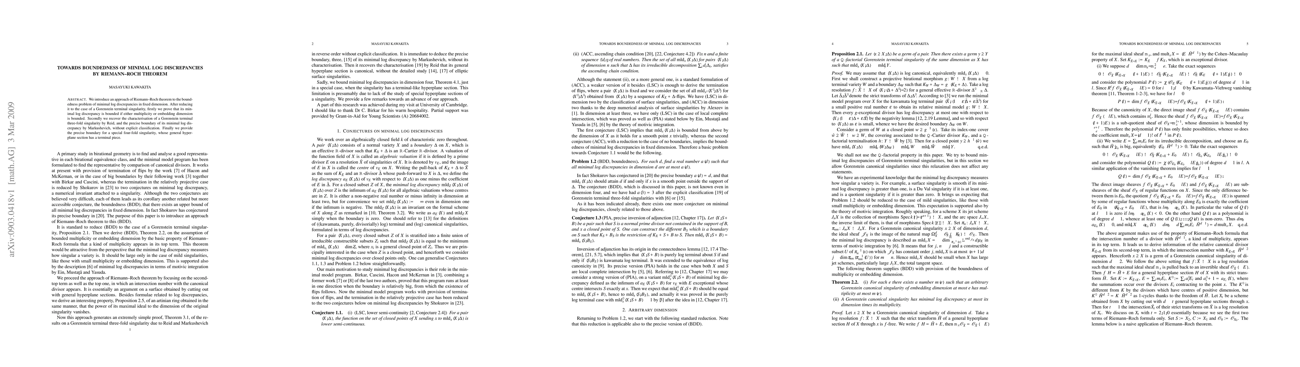 This paper utilizes the Riemann-Roch theorem to establish boundedness of minimal log discrepancies in fixed dimensions, proving that such discrepancies are bounded under certain conditions on singularity types and dimensions. It also characterizes Gorenstein terminal singularities and provides precise boundaries for specific four-fold singularities.