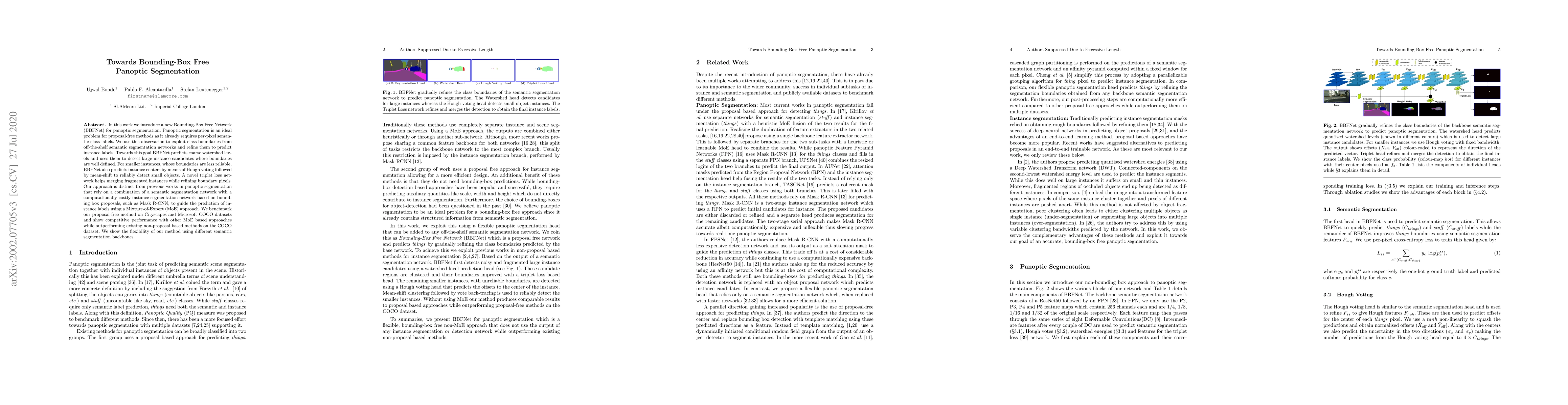 A new Bounding-Box Free Network (BBFNet) for panoptic segmentation achieves competitive performance without using bounding box proposals, outperforming existing methods on the COCO dataset.