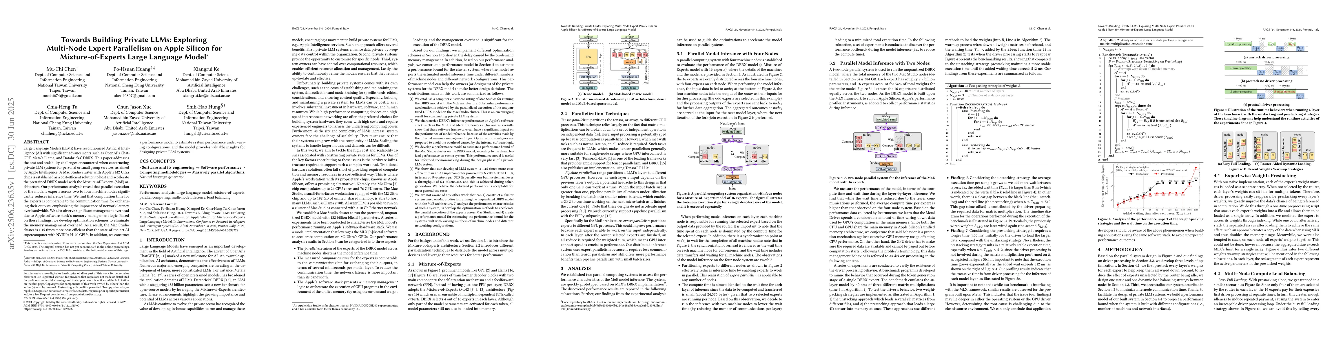 Large Language Models (LLMs) have revolutionized Artificial Intelligence (AI) with significant advancements such as OpenAI's ChatGPT, Meta's Llama, and Databricks' DBRX. This paper addresses the cost and scalability challenges encountered when constructing private LLM systems for personal or small group services, as aimed by Apple Intelligence. A Mac Studio cluster with Apple's M2 Ultra chips is established as a cost-efficient solution to host and accelerate the pretrained DBRX model with the Mixture-of-Experts (MoE) architecture. Our performance analysis reveal that parallel execution of the model's experts across two to four machine nodes significantly reduces inference time. We find that computation time for the experts is comparable to the communication time for exchanging their outputs, emphasizing the importance of network latency over bandwidth. We also observe significant management overhead due to Apple software stack's memory management logic. Based on these findings, we develop optimization schemes to eliminate the memory management overhead. As a result, the Mac Studio cluster is 1.15 times more cost-efficient than the state-of-the-art AI supercomputer with NVIDIA H100 GPUs. In addition, we construct a performance model to estimate system performance under varying configurations, and the model provides valuable insights for designing private LLM systems.